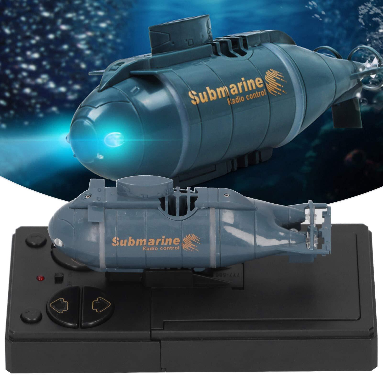 XinDe ミニRC潜水艦、ラジコン原子力潜水艦玩具、LEDライト付き電動防水ダイビングミリタリーモデルボートシップデュアルモーターとプロペラ付きポータブル潜水艦ボート(青)