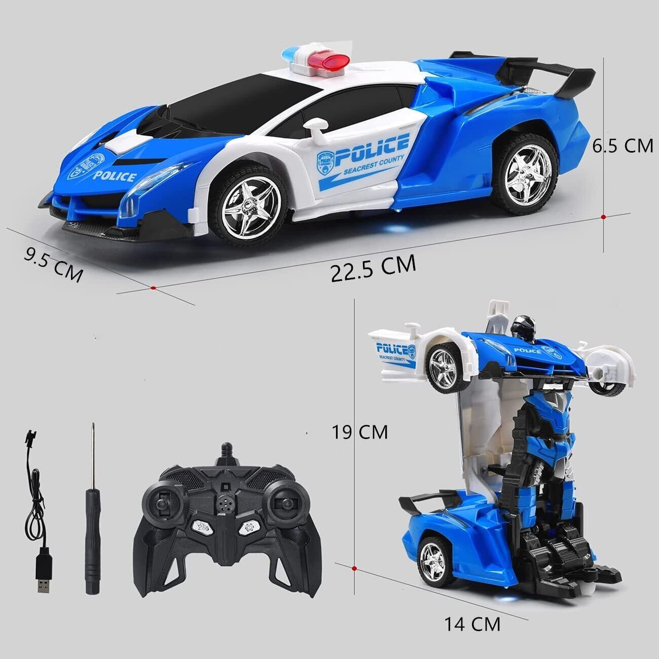 この【新しい警察 RCカー】は、ラジコンの楽しさに加え、ロボットに変形する特別な機能を持っています。車からロボットに簡単に変身できるため、遊びの幅が広がり、子供たちの想像力をかき立てます。面白い体験ができる、お子様にぴったりのおもちゃです!