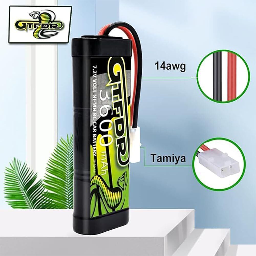 究極のパワーパンチを発揮!3600mAhの大容量7.2Vニッケル水素バッテリー。ラジコンカーやレーシングカーに最適。タミヤプラグ対応で、RCモデルとの互換性も抜群です。