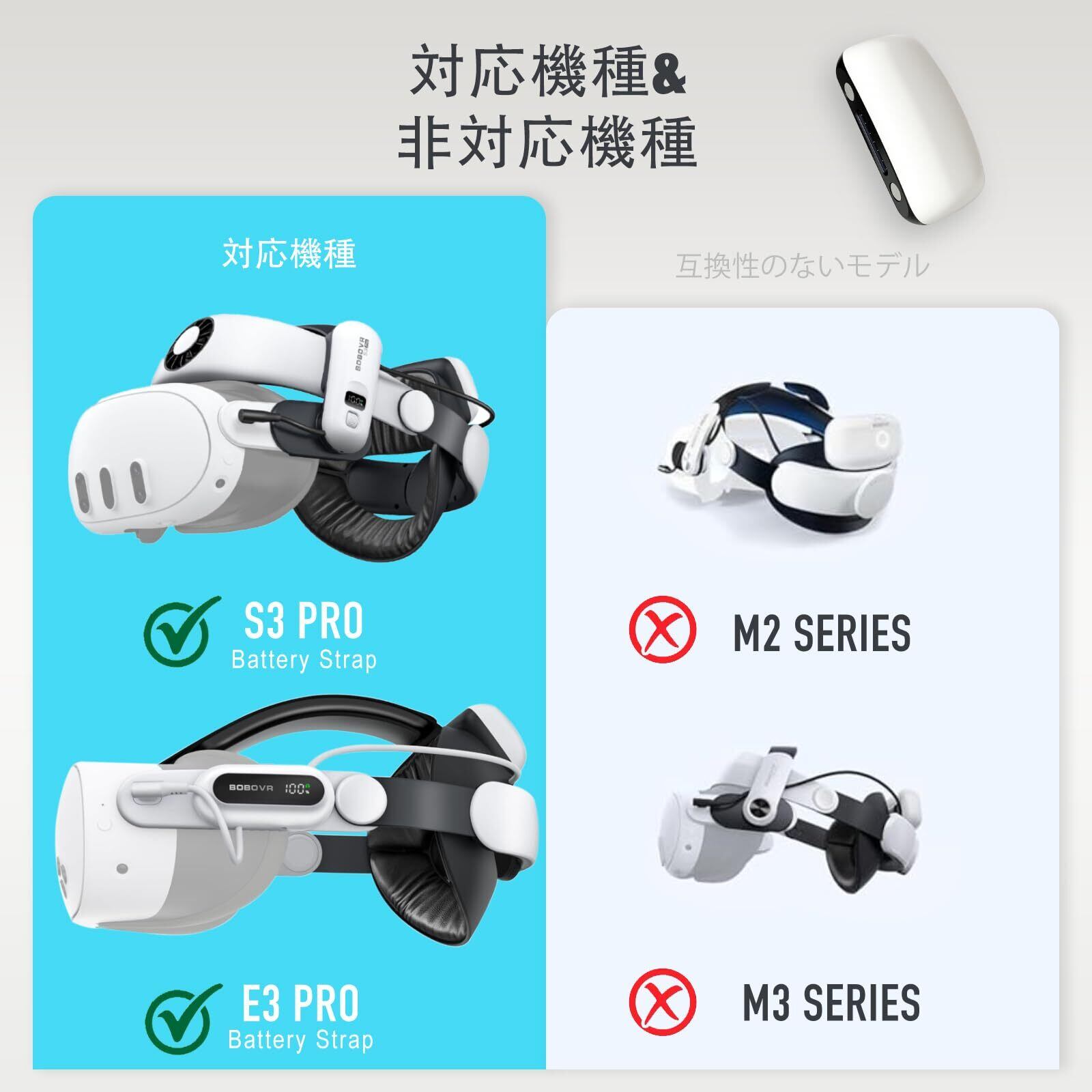 バッテリーの互換性: このバッテリーは、BOBO VR B100 の交換用バッテリーで、新しい S3 Pro ヘッドバンドおよび E3 Pro ヘッドバンドと互換性があります (M2/M3 シリーズのヘッドバンドとは互換性がありません)。