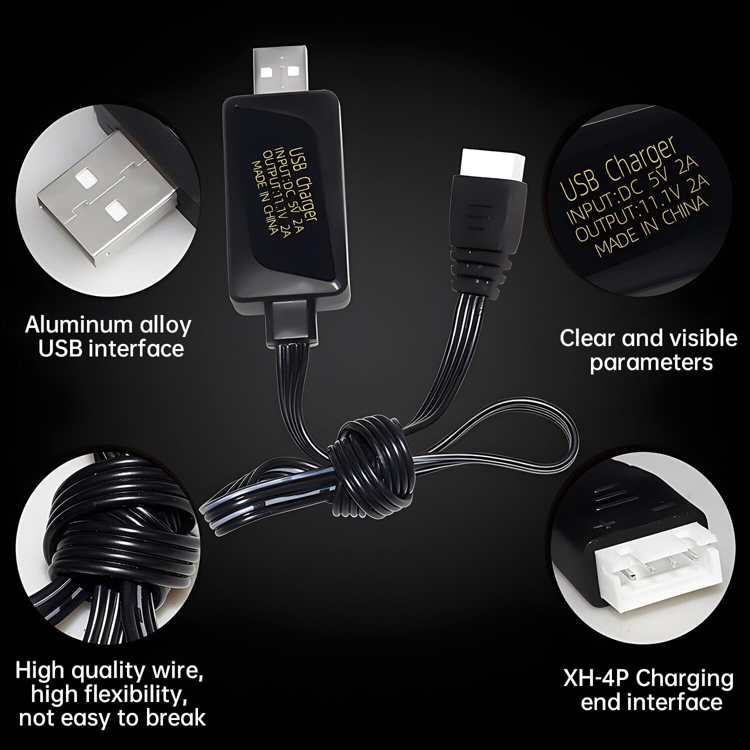 最大出力2AのこのUSB充電ケーブルは、迅速な充電が可能です。11.1Vのバッテリーに対応し、一刻も早くRC機器を稼働させたい方に特におすすめです!忙しい日常の中でも、手軽に充電ができる魅力的な仕様です。