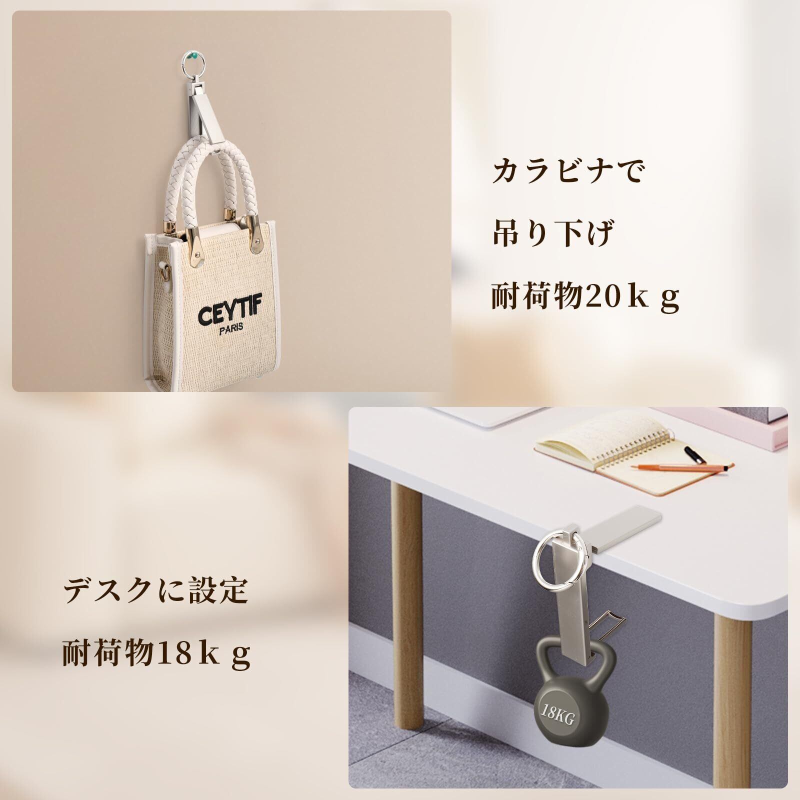 【改良版フック、新登場!】お客様からのご意見に耳を傾け、バッグハンガーの繋ぎ目部分を回転式から固定式に変更しました。壊れにくく、安定性がもっと高いです。また、フックの長さは市販のより0.5cmUPしました。物を掛けやすい。