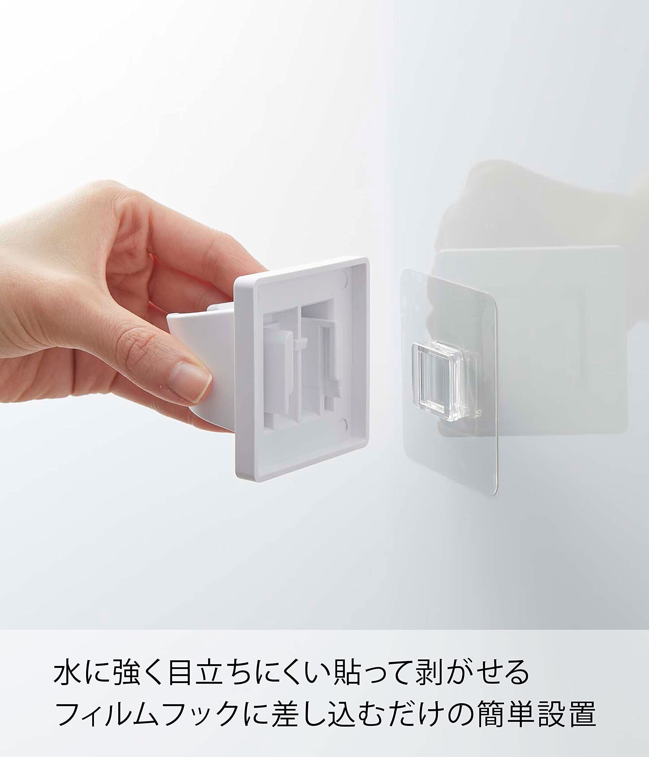 取り付け可能な壁面:光沢のある平らな油染みしない面(フィルムフックの接着面よりも大きい面・タイル・プラスチック面・ステンレス・ガラス・金属塗装面・人工大理石)