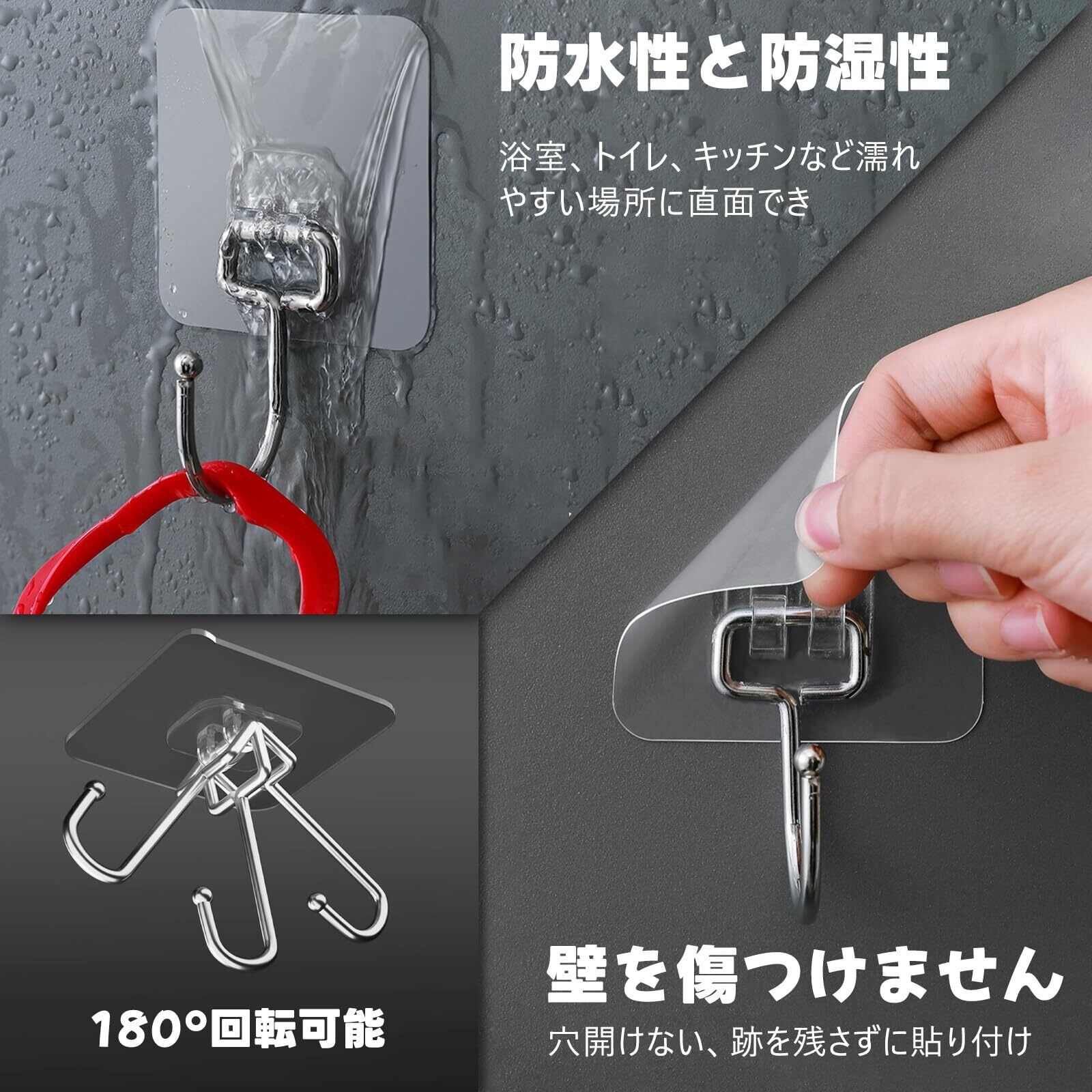 【角度調整可能・再利用可能】この壁掛けフックが180度回転することができますから、 天井に掛けてもいいです。粘着した場所を変えたい時、ヘアドライヤーでフックを加熱し、ゆっくりと剥がせて、水で透明フックでの埃を洗い、ドライヤーで乾燥して、粘着性はすぐ戻れます。再利用可能、多くにお金を節約できる上に、環境に優しいです。エコで経済的な生活用品です。