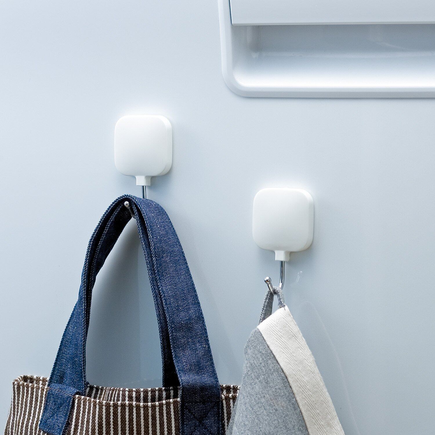 耐荷重は1kgで、様々なアイテムをしっかり支えます。キッチンでの調理器具やバスルームでの小物収納、オフィスでの書類整理など、幅広いシーンで大活躍。使いたい場所にさっと取り付けるだけで、便利な収納スペースがすぐに確保できます。