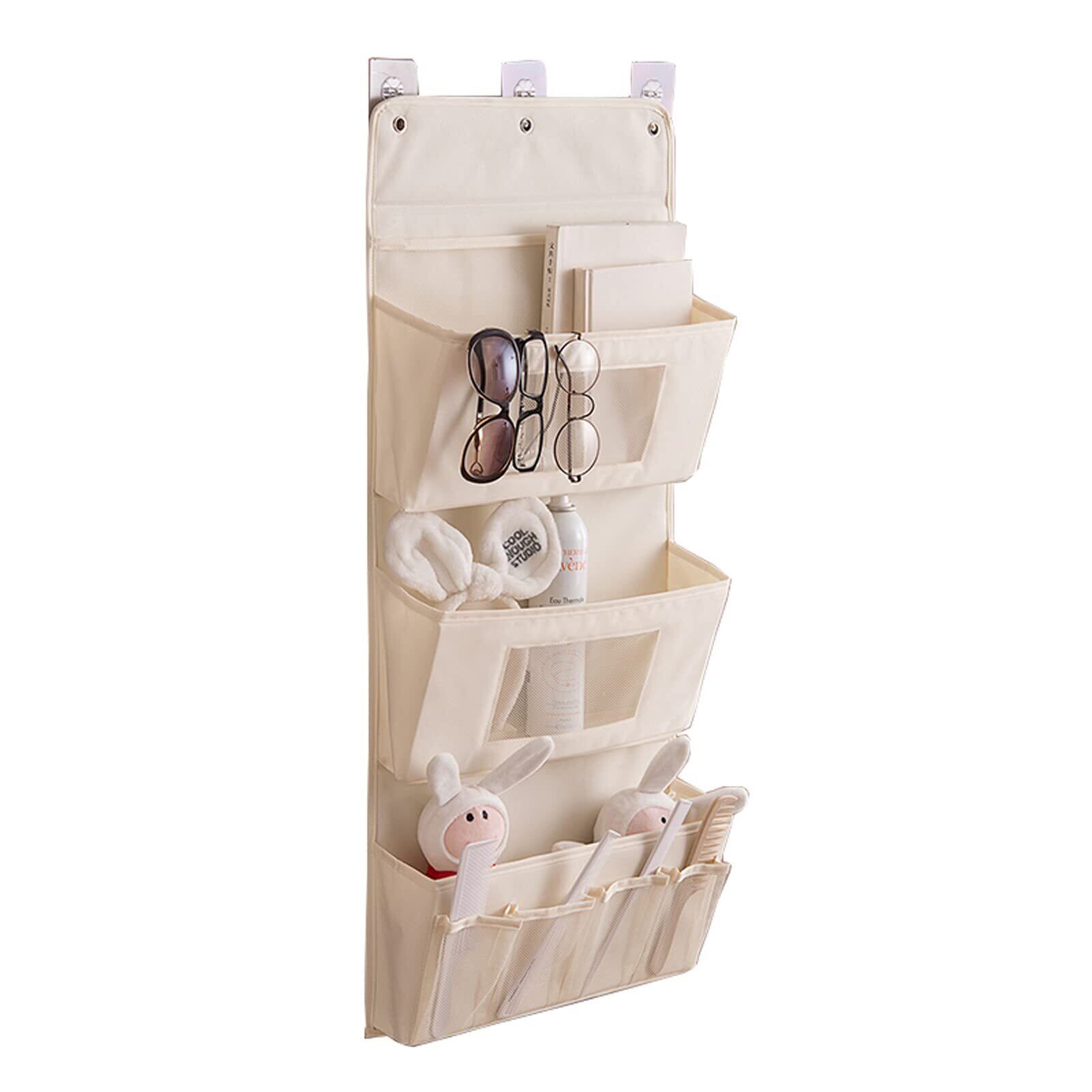 ArcEnCiel ウォールポケット 壁掛け収納式 ドアハンガーポケット 吊り下げ収納ポケット ドア掛け 3段 8ポケット 取付簡単 工事不要 a4 小物入れ 収納ポケット 雑誌 手紙 レター リモコン 寝室 玄関 事務室 洗面所 粘着フック付き クリーム