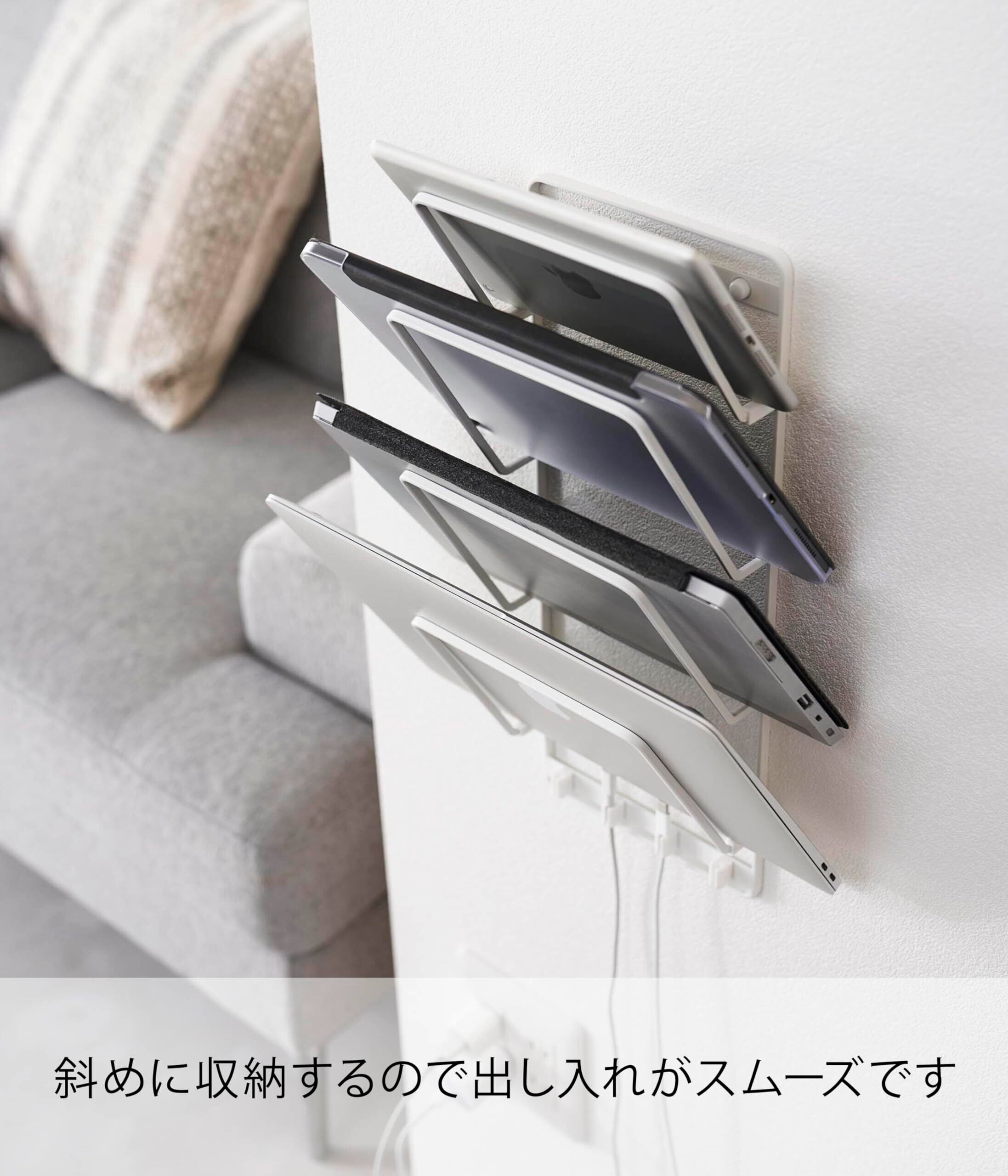 山崎実業(Yamazaki) 【 石こうボードピンセット・木ネジ 付属 】 石こうボード壁対応 ウォール タブレットホルダー 4段 ホワイト 約W16×D11×H42cm タワー tower 充電コードホルダー 本 収納 まとめて収納 整理整頓グッズ 1979