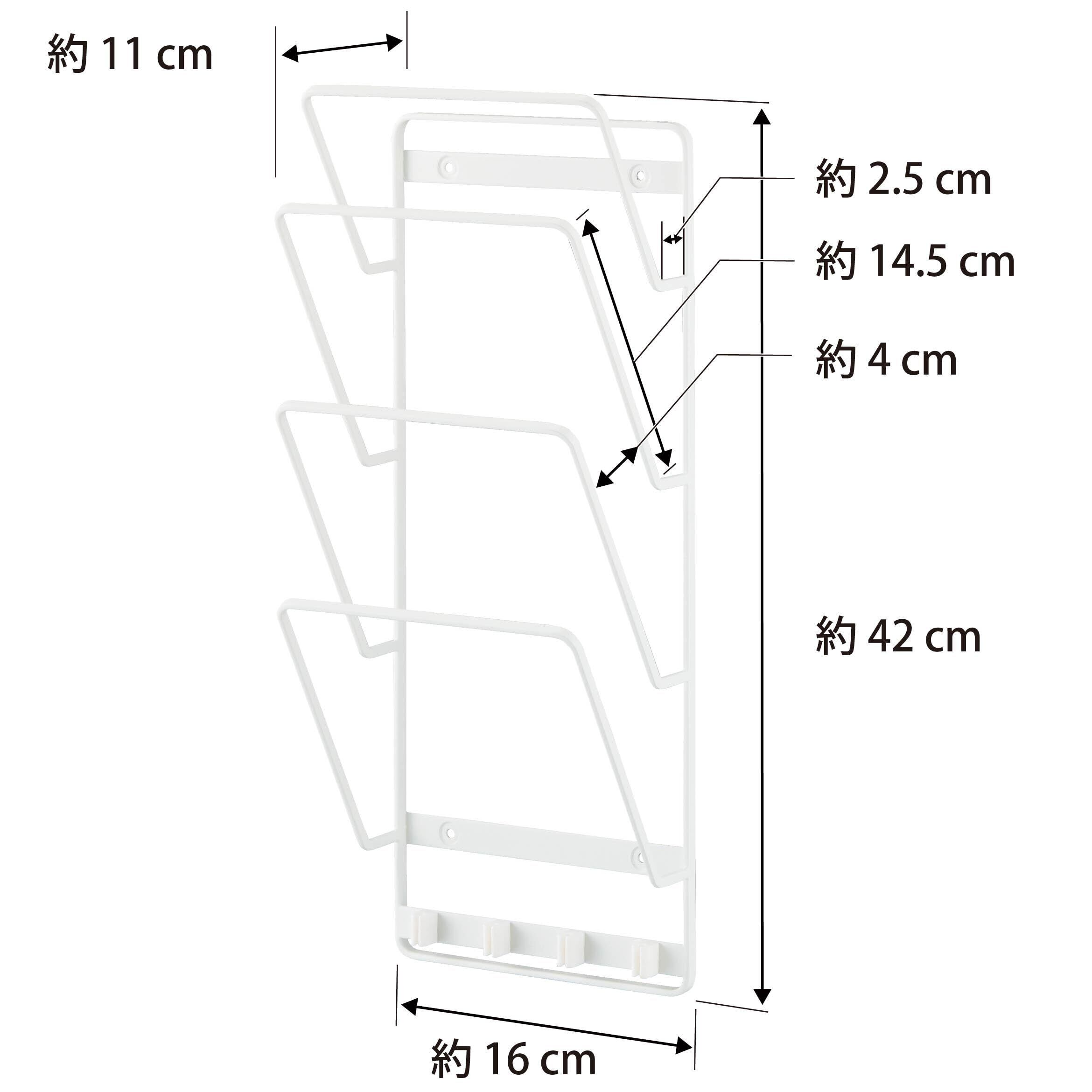 本商品は、石こうボード壁にも対応しており、付属の石こうボードピンセットや木ネジを使って簡単に取り付けが可能です。サイズは約W16×D11×H42cmで、オフィス用の書類や本、タブレットの充電コードなど、様々なアイテムをまとめて収納できます。使い勝手の良さを追求したデザインです。