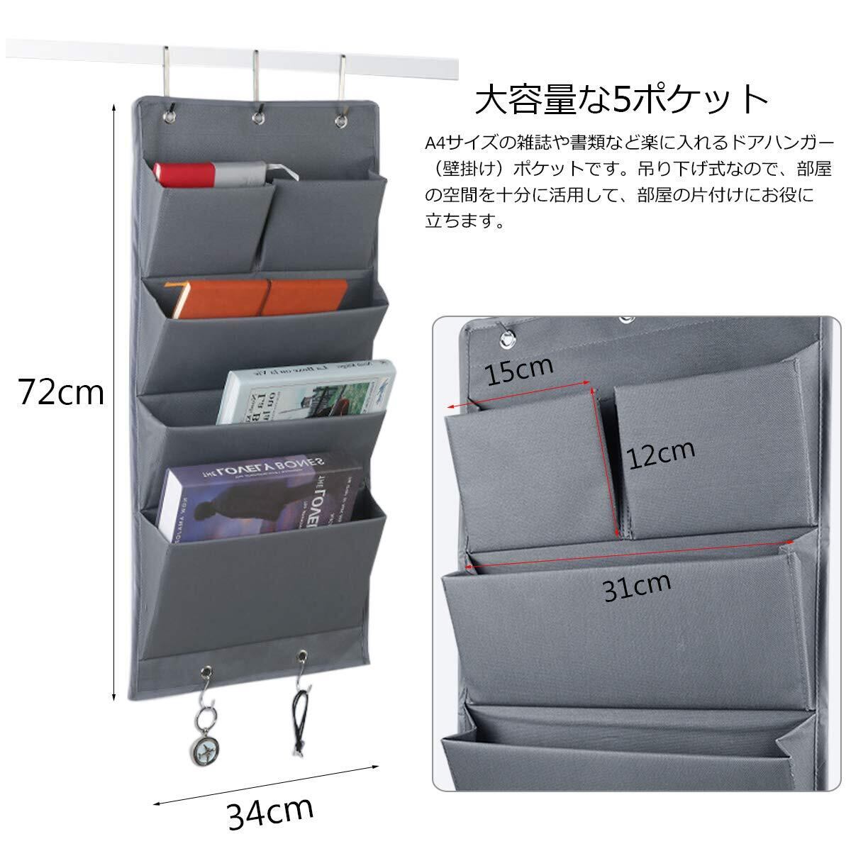 ArcEnCiel ウォールポケット 壁掛け収納式 ドアハンガーポケット 4段 5ポケット ドア掛け 壁掛け a4 小物入れ 収納ポケット 雑誌 手紙 リモコン 玄関 グレー