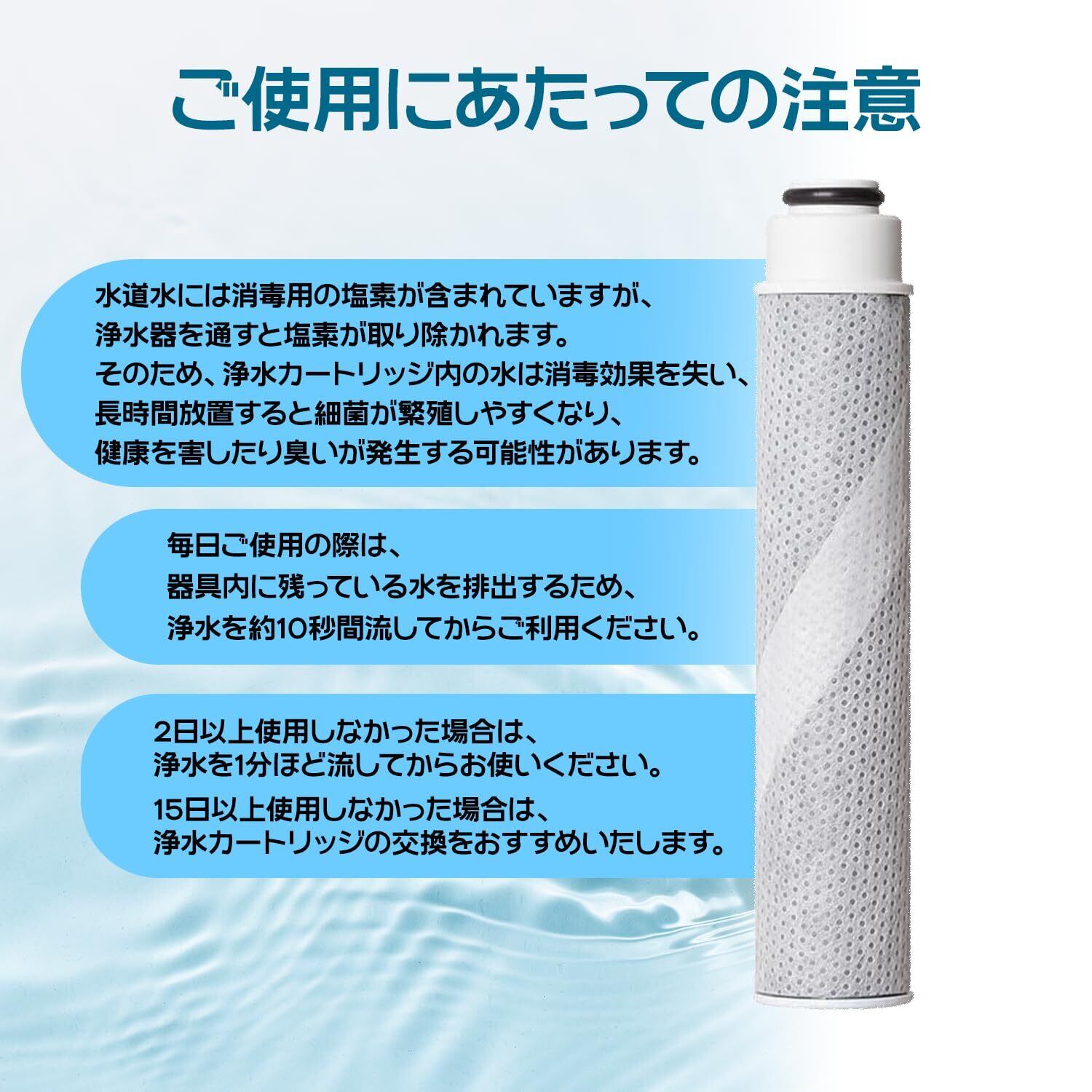 本商品は、厳選された素材を使用し、水道水に含まれる塩素や不純物を効果的に除去します。安心して飲料水や料理に使用できるため、家族全員の健康をサポートします。長持ちする設計で、経済的にも優れています。