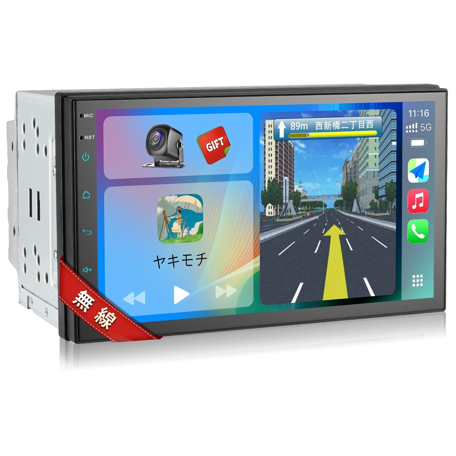 【数量限定】2DIN 7インチカーオーディオ統合ナビゲーション,30バンドEQ,1024 x 600pディスプレイ,ステレオ受信機,スマートフォンに接続されたワイドFM/AM,有線/無線CarPlay/AndroidAuto&ミラリング,リアカメラ