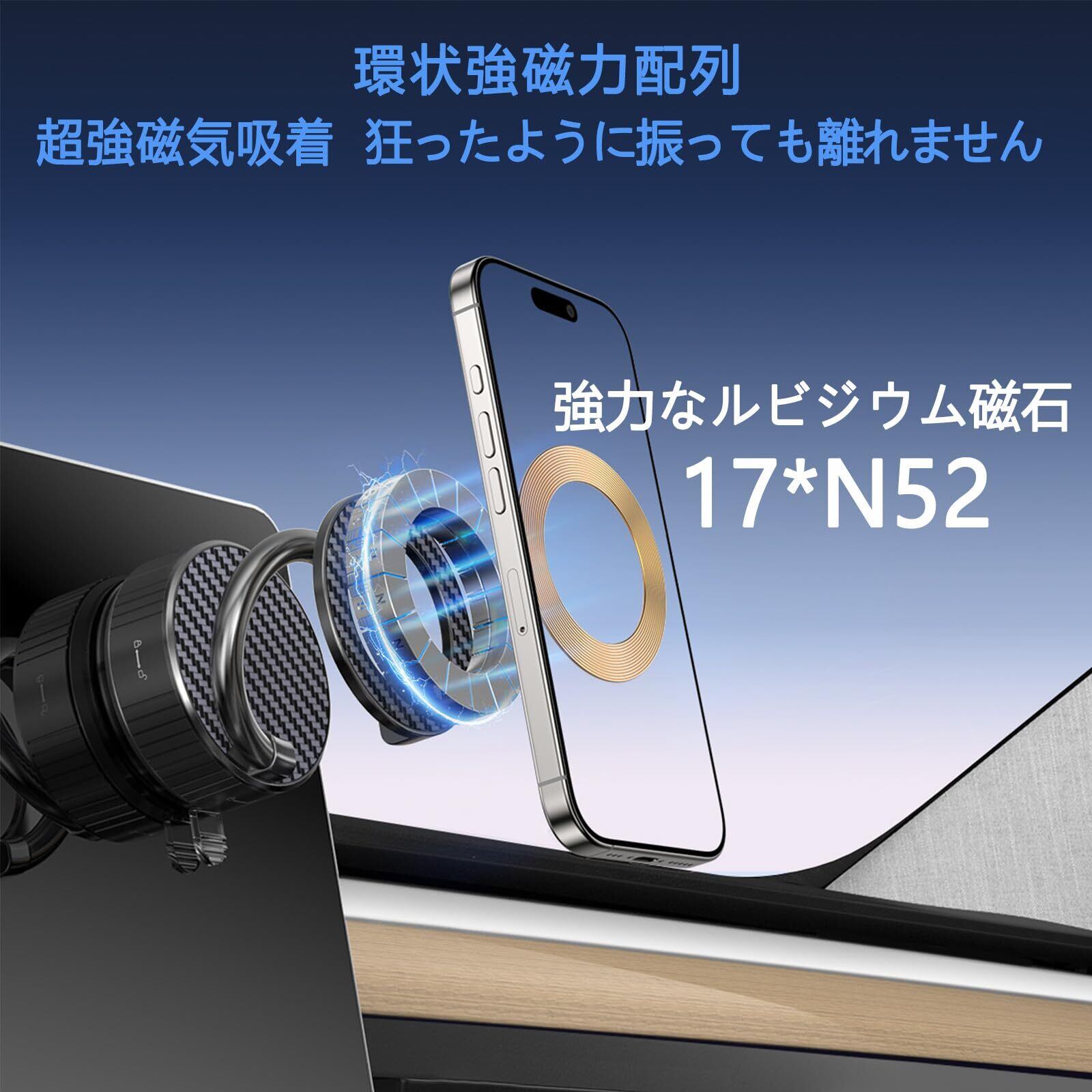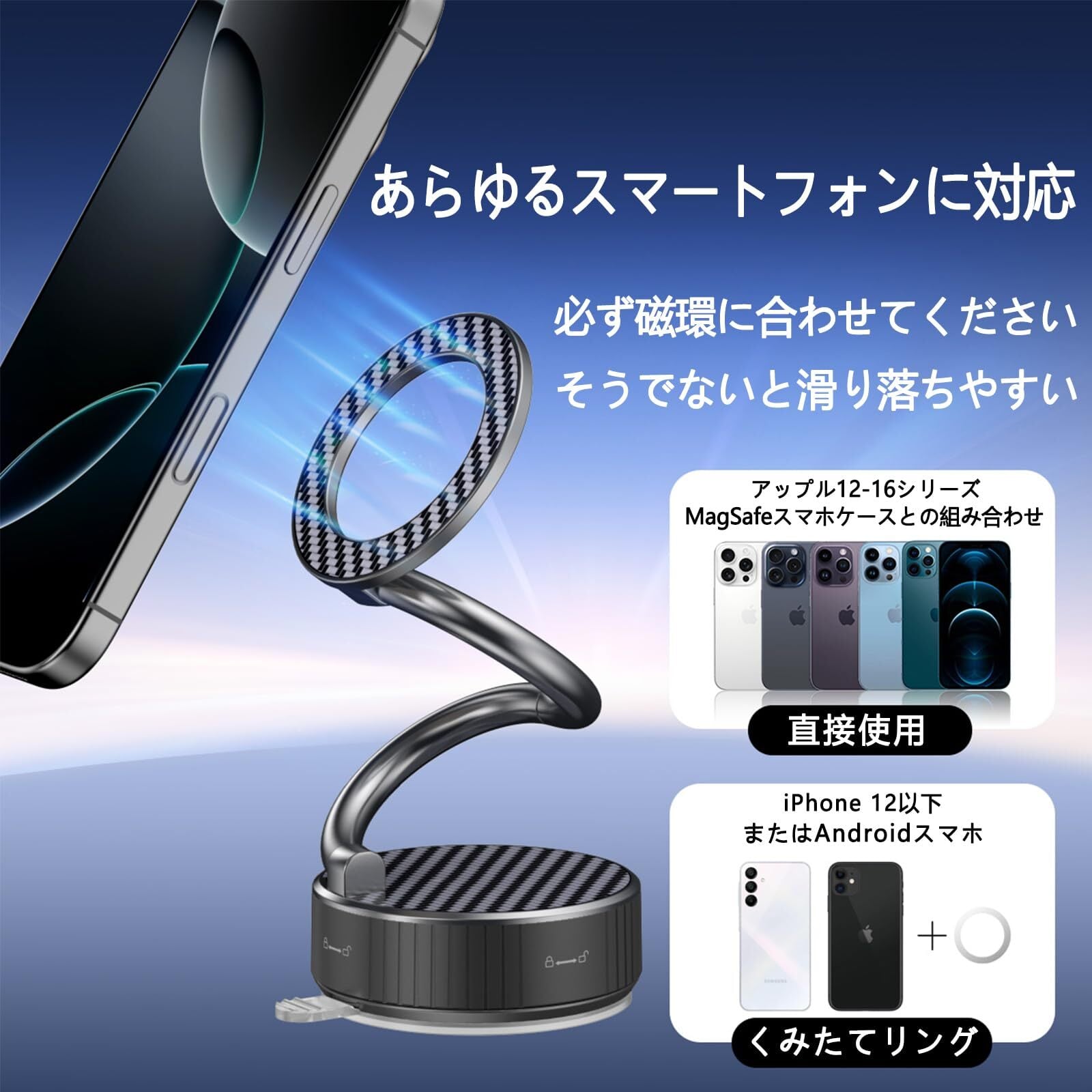 【新春セール】マグネット式MagSafe対応の車載スマホホルダー:強力真空吸引車載スタンド - iPhone/Android用360度回転調整可能な携帯用スマホスタンド