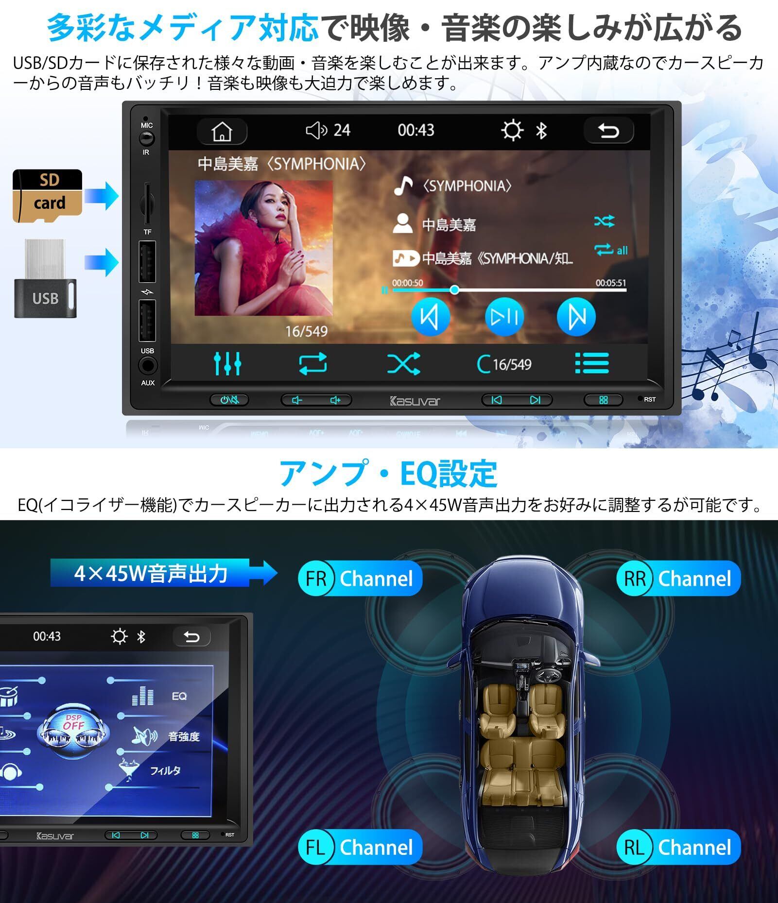 2DIN 7インチ ディスプレイ オーディオ 30バンドEQ 1024×600P IPSタッチパネル FM/AMラジオ スマホ連携で無線CarPlay/AndroidAuto、Youtubeをミラーリングする バックカメラ連動、ステアリング制御、アンプ内蔵、映像出入力、USB/SD動画音楽再生可能な多機能カーオーディオ一体型車載ナビ Bluetooth5.0 技適取得【KAR7】