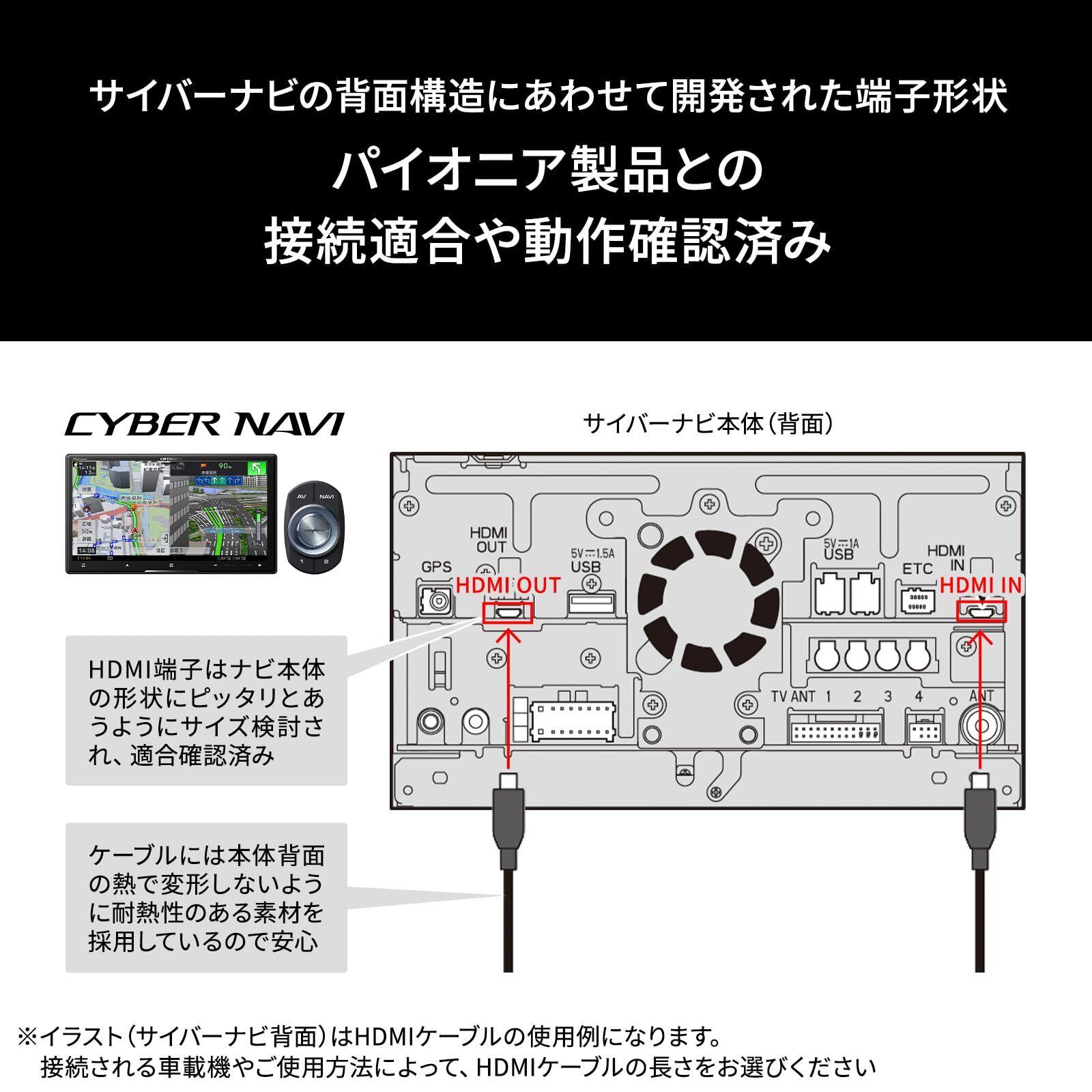 対応機種:サイバーナビ(912-2/912系)、楽ナビ(912/712/512系)、その他HDMI入出力(Type D - Type A)対応車載器