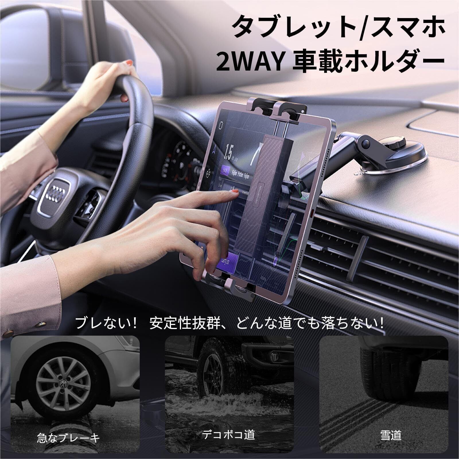 【 幅広い対応 】ipad 車載ホルダー は4.7-12.9インチのデバイスに適用します。伸縮部分は簡単に引かれでき、iPad、Samsung Galaxy など幅広いのタブレットやiPhone、Galaxy S21、S20、S10 / Sony / Huaweiなどのスマートフォンにも対応可能です。車にだけでなく、オフェンス、キッチンなどあらゆるシーンで大活躍します。タブレットホルダー スマホホルダー 両用です。