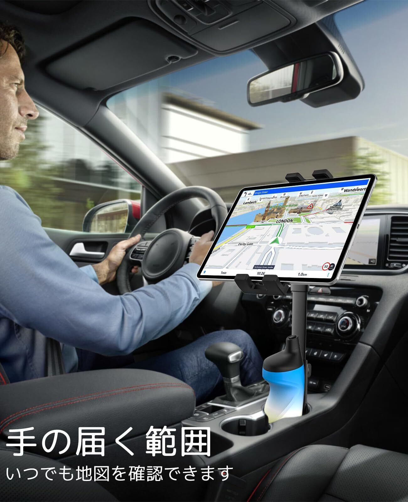 【幅広い互換性】このカップホルダー付きタブレットスタンドは、車、トラック、SUV、ピックアップトラック、ゴルフカート、ボート、ランニングマシン、マッサージチェア、ベビーカーなどに最適です。後部座席にカップホルダーがある車両にも最適です。