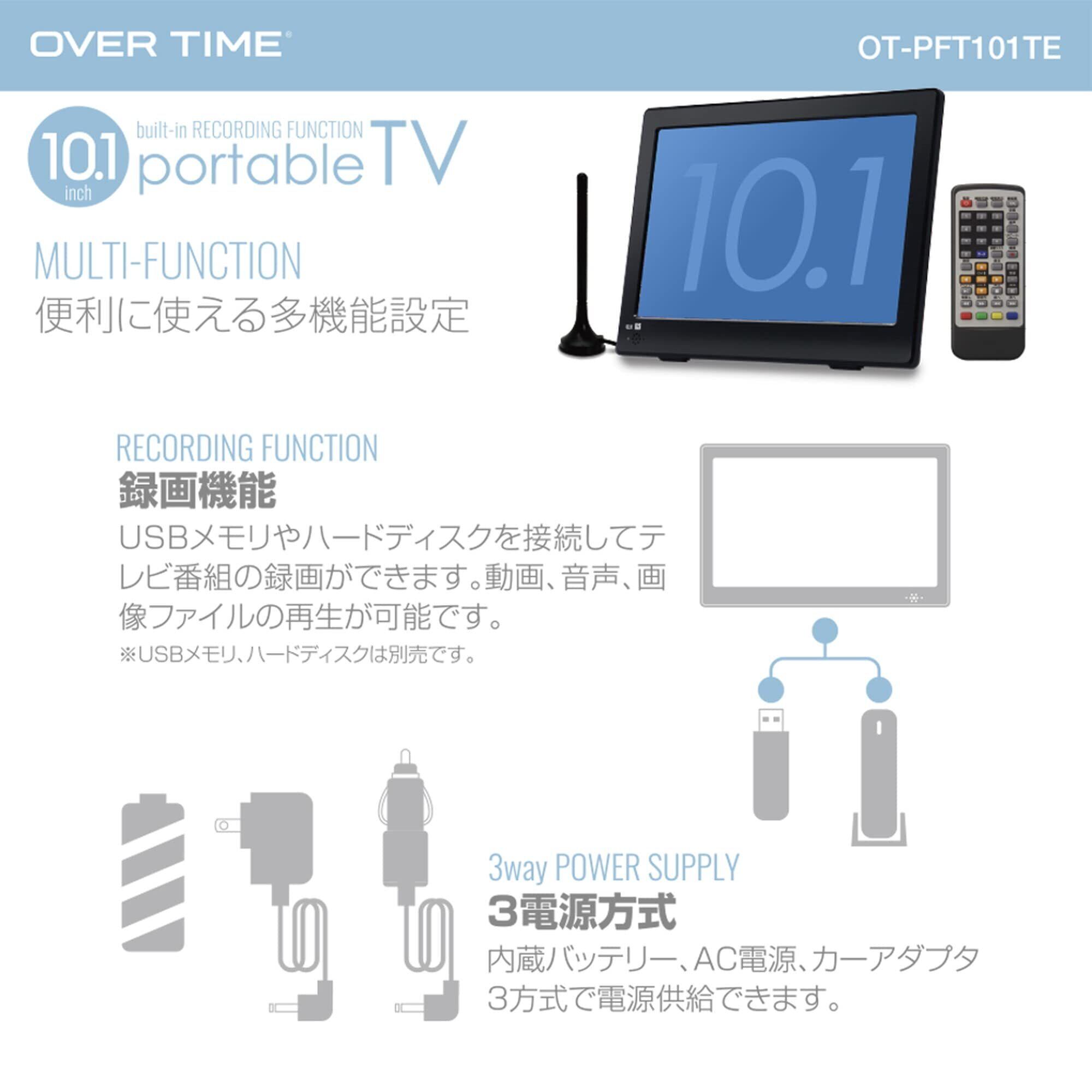 OVERTIME 10.1インチ録画機能付きポータブルテレビ OT-PFT101TE