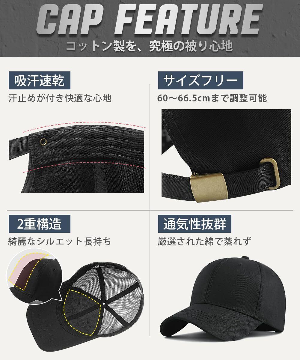 [Andeor] キャップ メンズ 大きいサイズ 帽子 【特大60-66.5cm・UPF50+測定済み・2重型崩れにくい】 キャップメンズ 深め 紫外線対策 メッシュ 刺繍 シンプル おしゃれ 野球帽 調整可能 ゴルフ アウトドア 男女兼用 四季 3タイプ展開