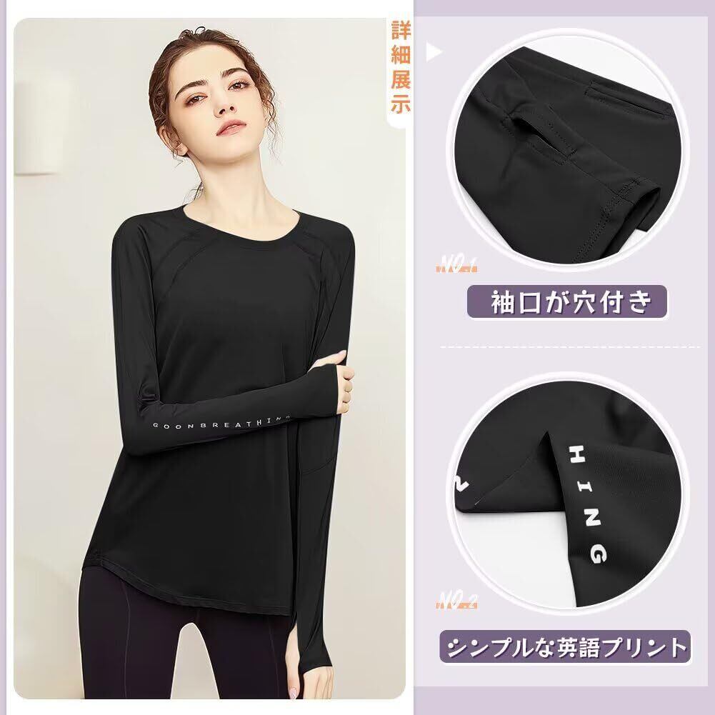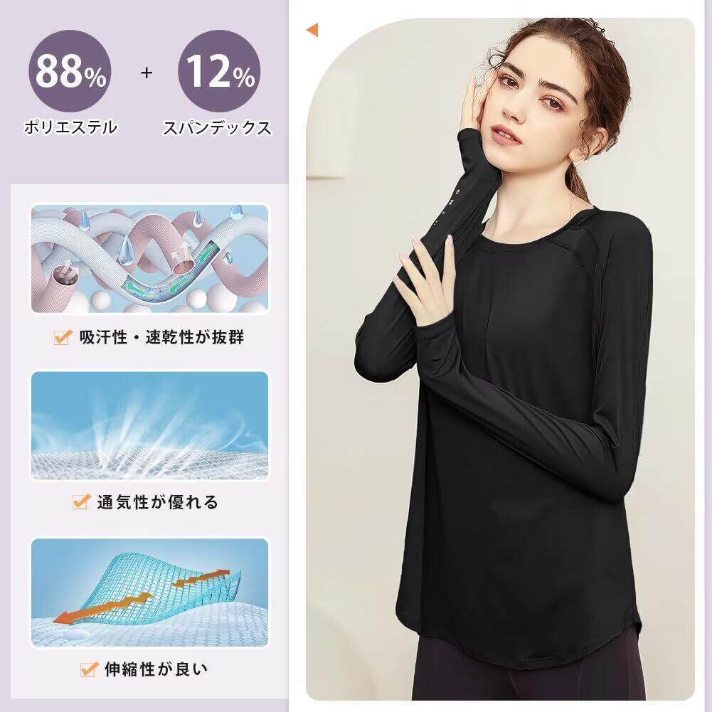 【数量限定】[Rovidorx] ヨガウェア トップス 長袖 tシャツ レディース スポーツ ゆったり 指穴付き スポーツウェア 体形カバー ジムウェア ピラティスウェア トレーニングウェア ランニングウェア ロング丈 UVカット 吸汗速乾