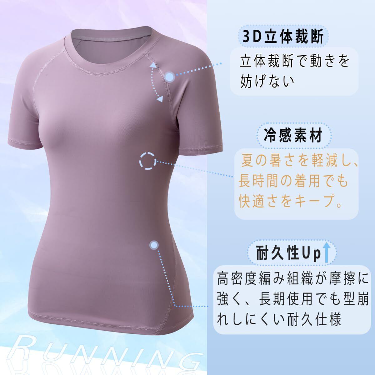 [Pluviva] ヨガウェア トップス スポーツtシャツ レディース 半袖 ピラティス ランニング スポーツウェア ジム ホットヨガ サイクリング フィットネス yoga 速乾