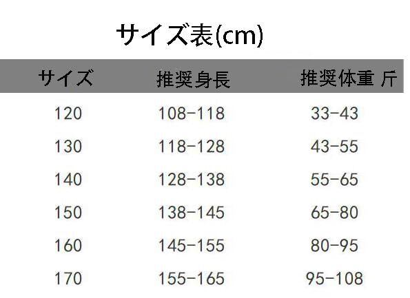 120cmから170cmまでの多様なサイズ展開があり、お子様の成長に合わせて長くご愛用いただけます。兄弟姉妹や友達とのお揃いコーデも楽しむことができ、皆で楽しい時間を過ごすことができます。