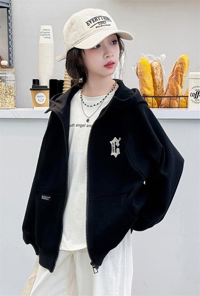 [KOSIKINI] キッズ パーカー 女の子 ジャンパー キッズ アウター ガールズ パーカー 子供 コート 春 秋 冬 ジップ パーカー 子供服 女の子 小学生 中学生 ジュニア 女の子 プレゼント かわいい 韓国 おしゃれ パーカー