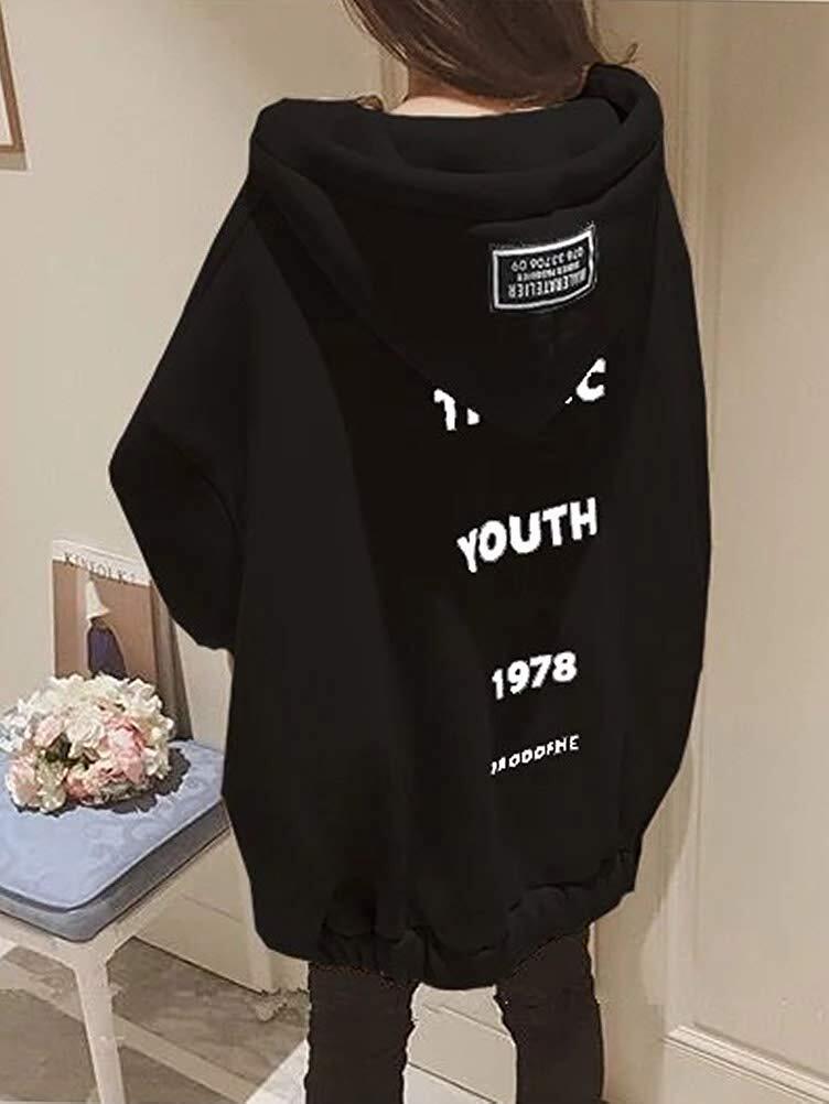 バックにシンプルな英字プリント付き、可愛さと防寒性を兼ね備えるオーバーサイズパーカーです。