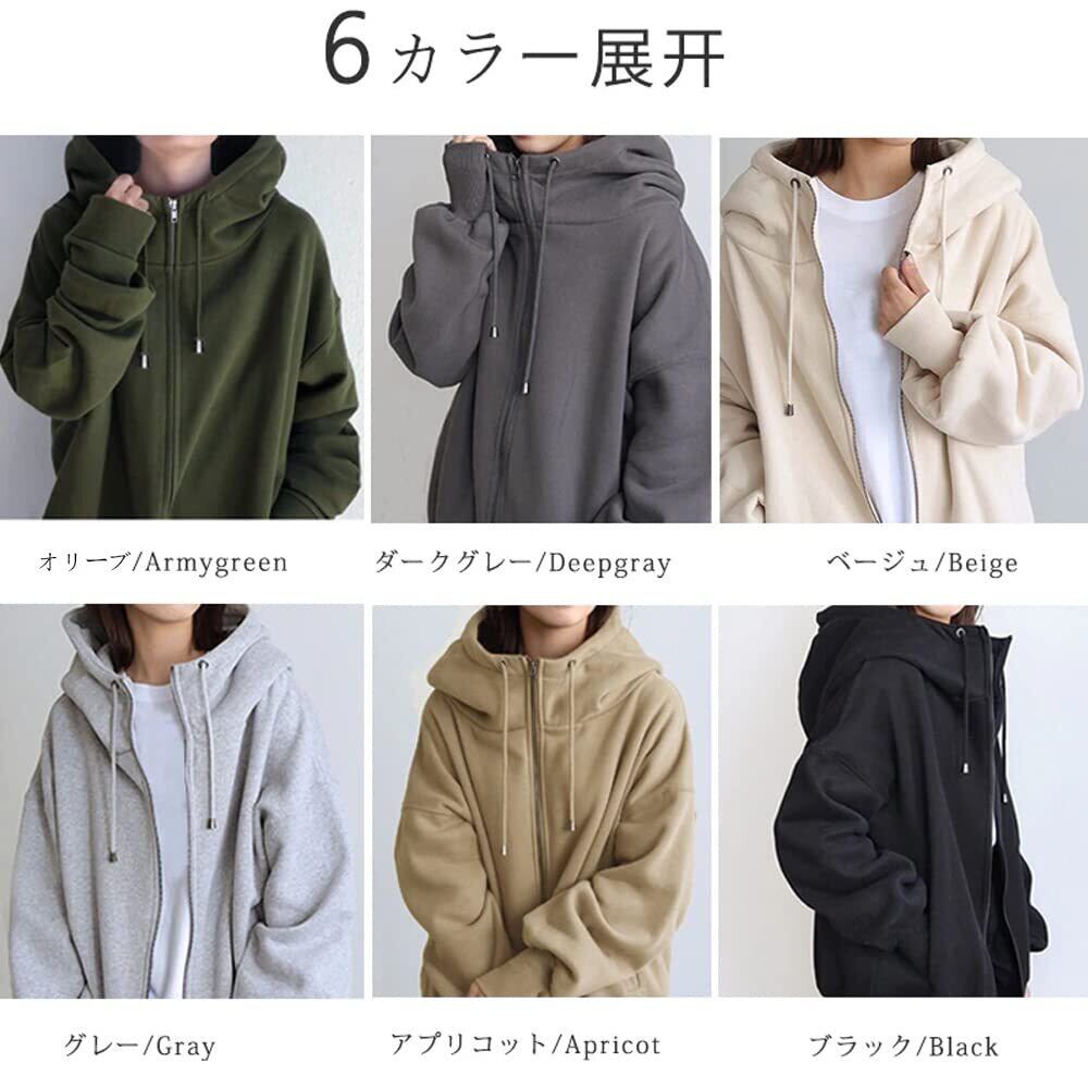 YUESUO ジップアップパーカー レディース パーカー ジップパーカー アウター コート 裏起毛 フード 長袖 スウェット ファスナーパーカー 厚手 ロング丈 あったか 可愛い 大きめ ゆったり 無地 きれいめ 立ち襟 カジュアル 秋 冬