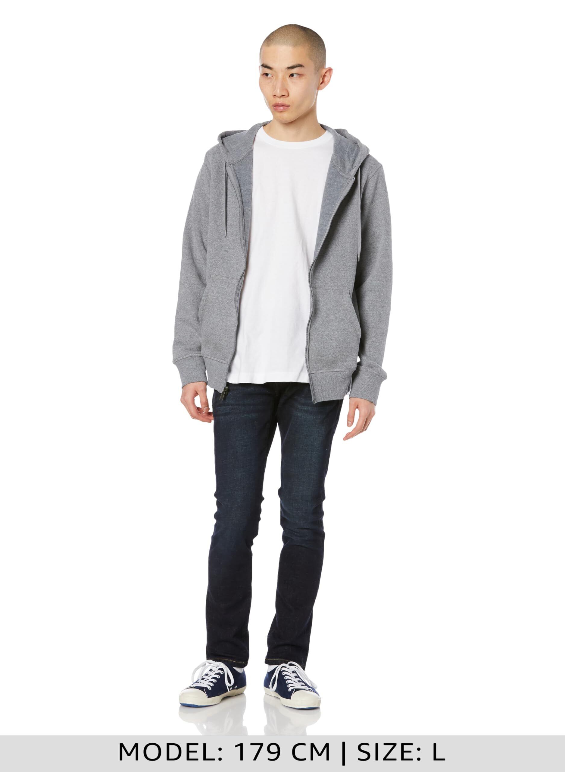 この【メンズジップアップパーカー】は、裏起毛素材を使用しており、暖かさと柔らかさを両立しています。寒い季節のコーディネートにも安心なアイテムで、軽やかな着心地が魅力です。フルジップデザインで、さっと着られるのが便利です!