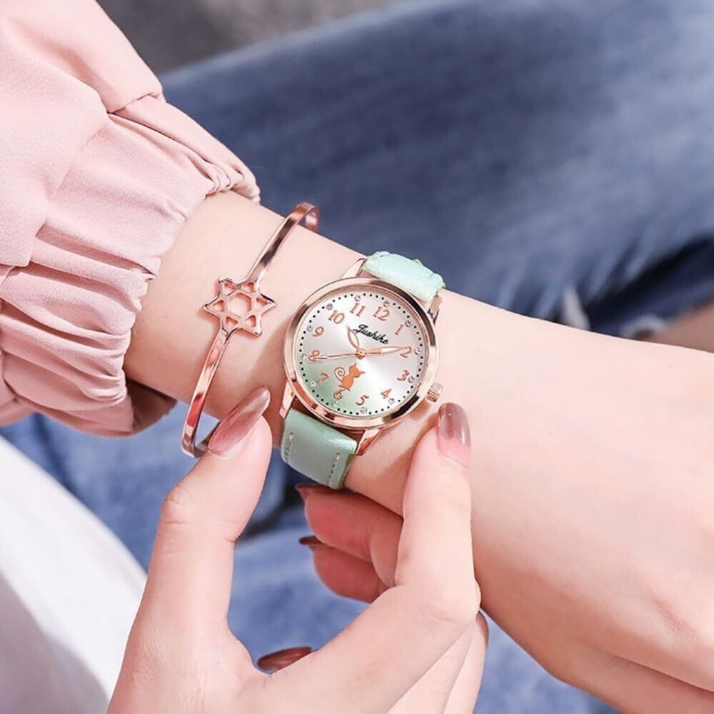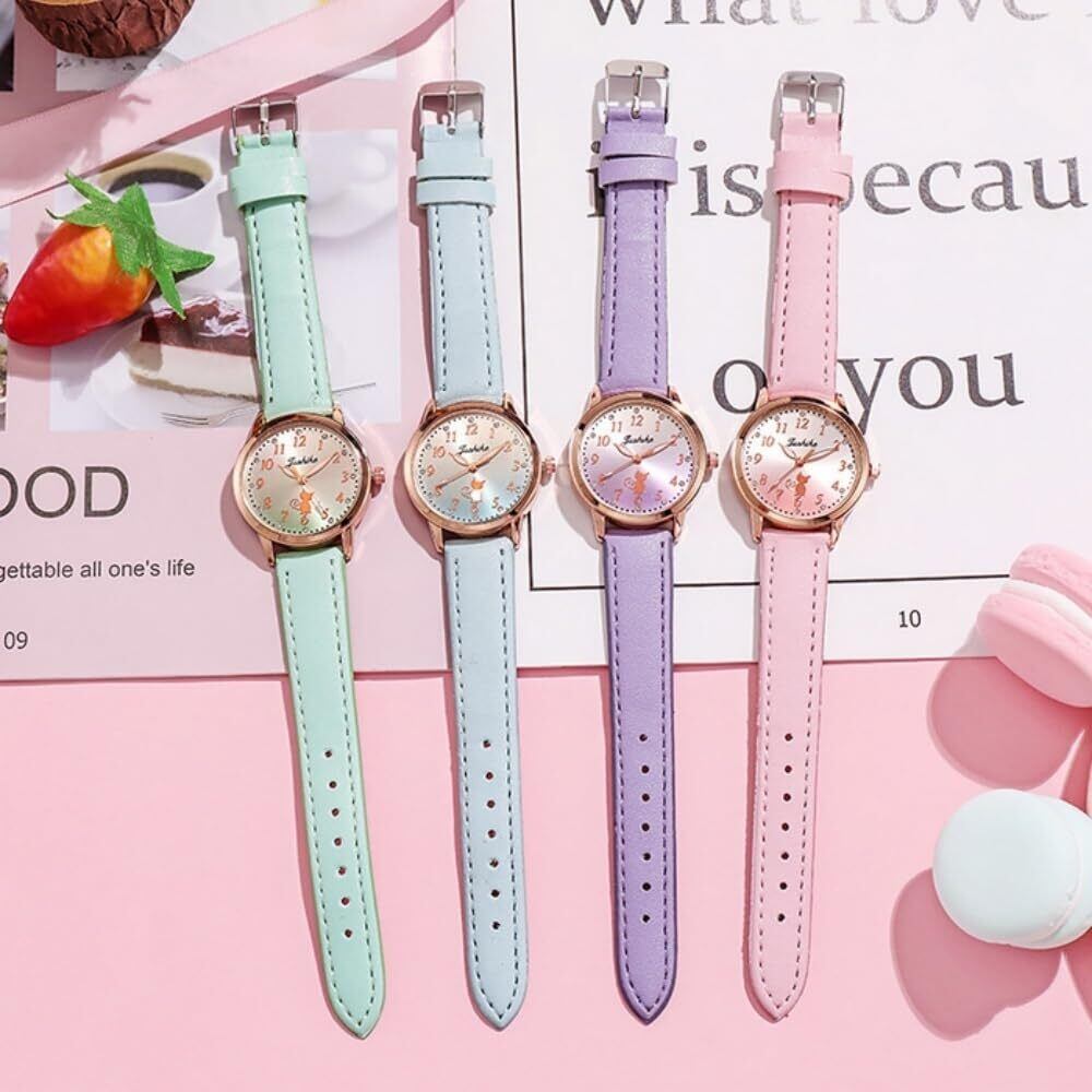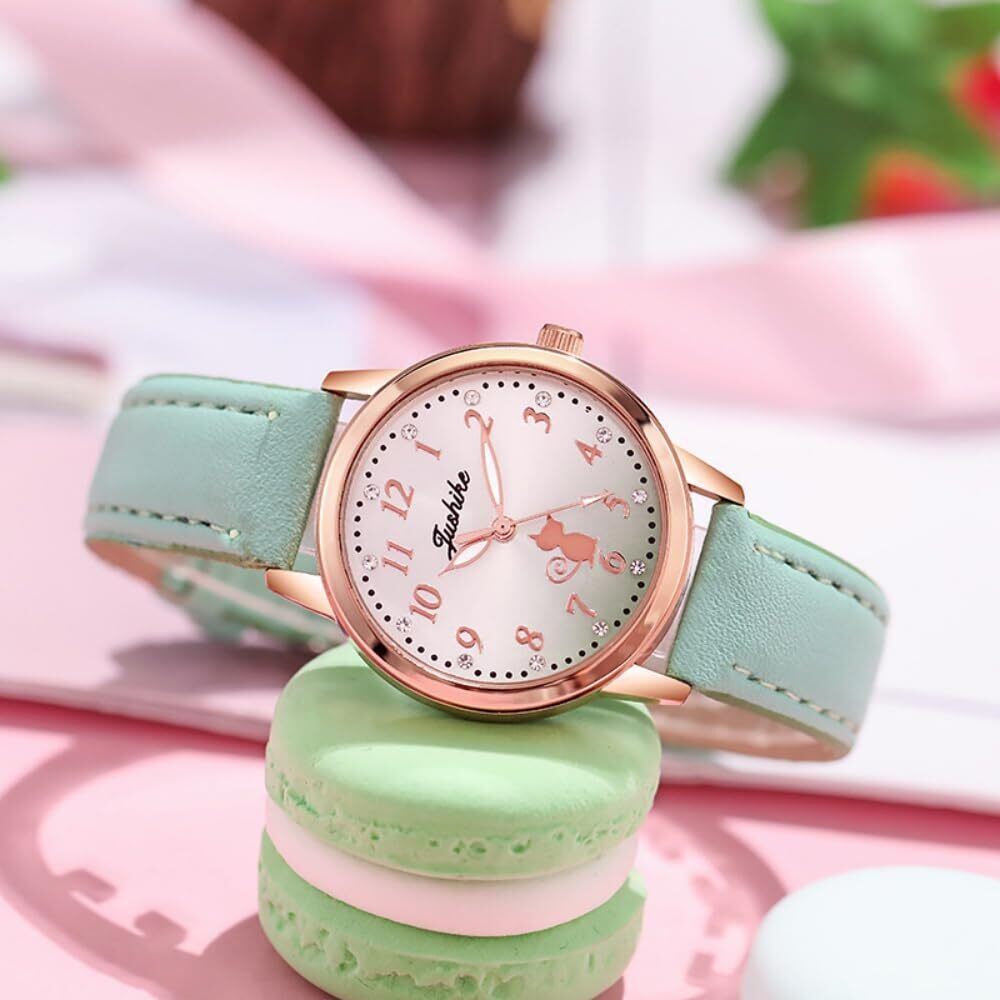 キッズ腕時計 クオーツ アナログ表示 ガールズ子供用腕時計 子供の日 入学 通学 入園 通園 新学期 誕生日 プレゼント お祝い (12.20-緑)