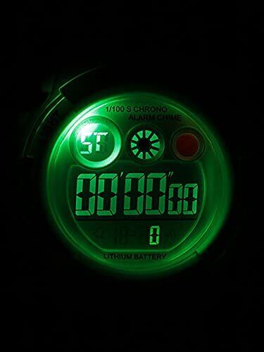 5気圧防水のデジタルウォッチ、防水のほかにELバックライトで夜でも見やすい。アラーム機能、ストップウォッチ、カレンダー機能と多機能。LEDバックライトは7色に光ります。