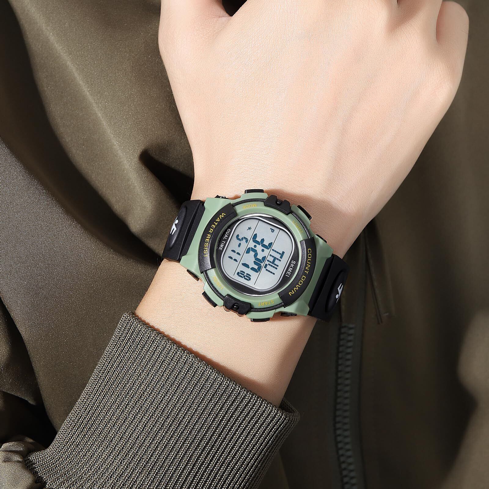 Timever(タイムエバー)多機能 子供腕時計 男の子 見やすいデジタル腕時計 ボーイズスポーツウォッチ キッズ用時計 防水 目覚まし時計 ストップウォッチ カウントダウン 日付曜日表示 (グリーン)