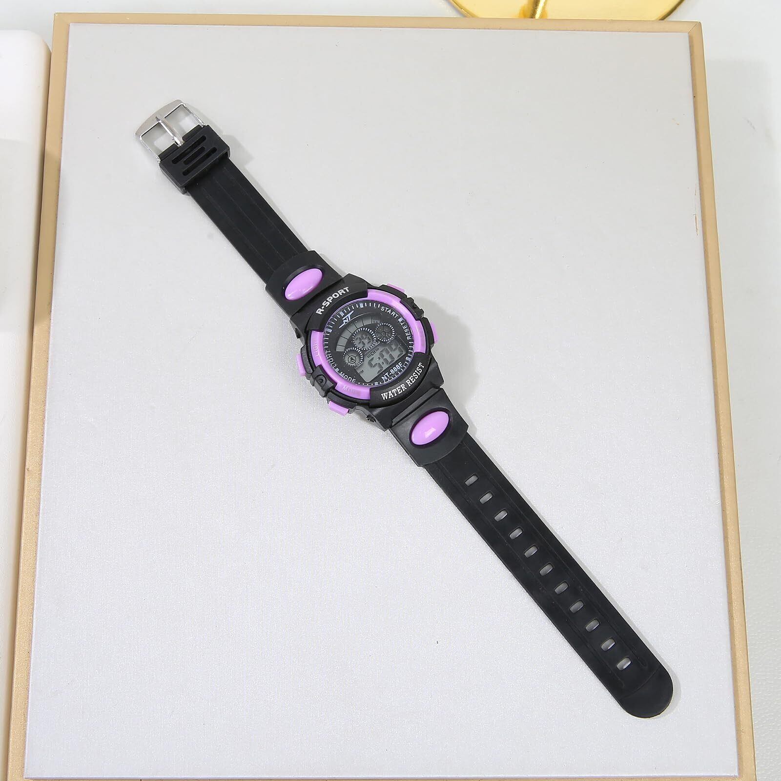 1 x 【特価商品】キッズ腕時計 ボーイズデジタル 子供用 カラー豊富 男の子腕時計 女の子 曜日表示 目覚まし時計 子供の日 入学 通学 入園 通園 新学期 誕生日 お祝い プレゼント (5.25-紫)