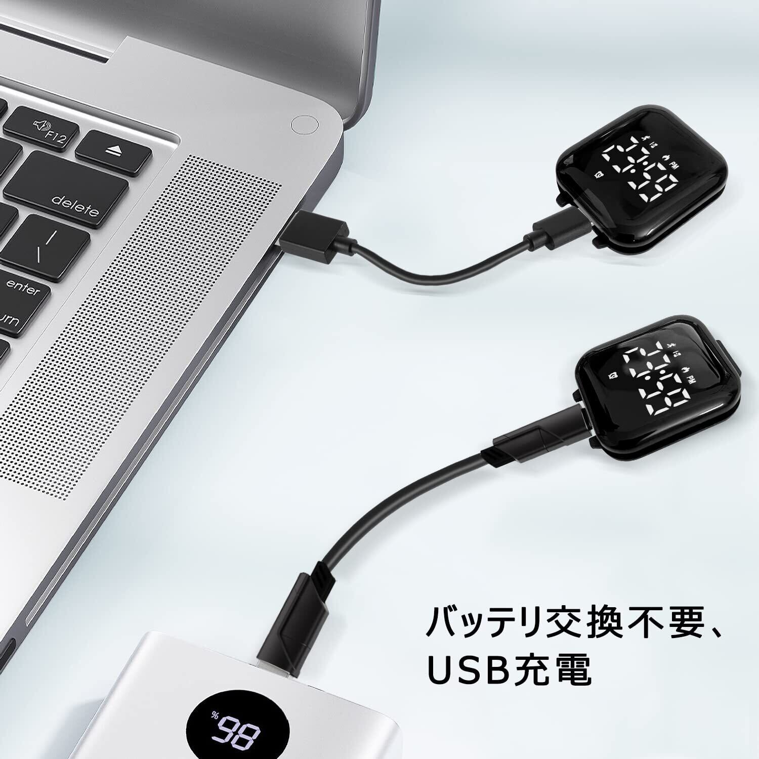 [USB充電式-長持ちバッテリー]:充電式 デジタル腕時計は便利な充電式のデザインを採用しており、使いやすく、電池交換も必要ありません。高品質バッテリーを採用しており、寿命が長い。文字盤をえベルトから取り出した後、充電ケーブルを使って文字盤のインタフェースに差し込むだけで充電できる。通常は1時間充電して、10~15日程度ご利用できる。
