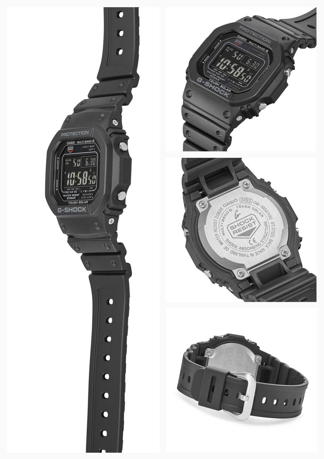 1983年に誕生したDW-5000Cのデザインを継承し、タフソーラー、マルチバンド6を搭載し進化を果たした人気のGW-M5610シリーズ。ファーストモデルDW-5000のケース形状、文字板デザインを受け継いだクラシカルなデザインはそのままに、ブラックのケース・バンドに反転液晶を組み合わせました。色埋め部分すべてにダークグレーを採用し、全身モノトーンでクールに仕上げています。タフネスをコンセプトに進化を続けるG-SHOCKの中で、ファーストモデルのDNAを受け継ぎ、更に進化したモデルです。