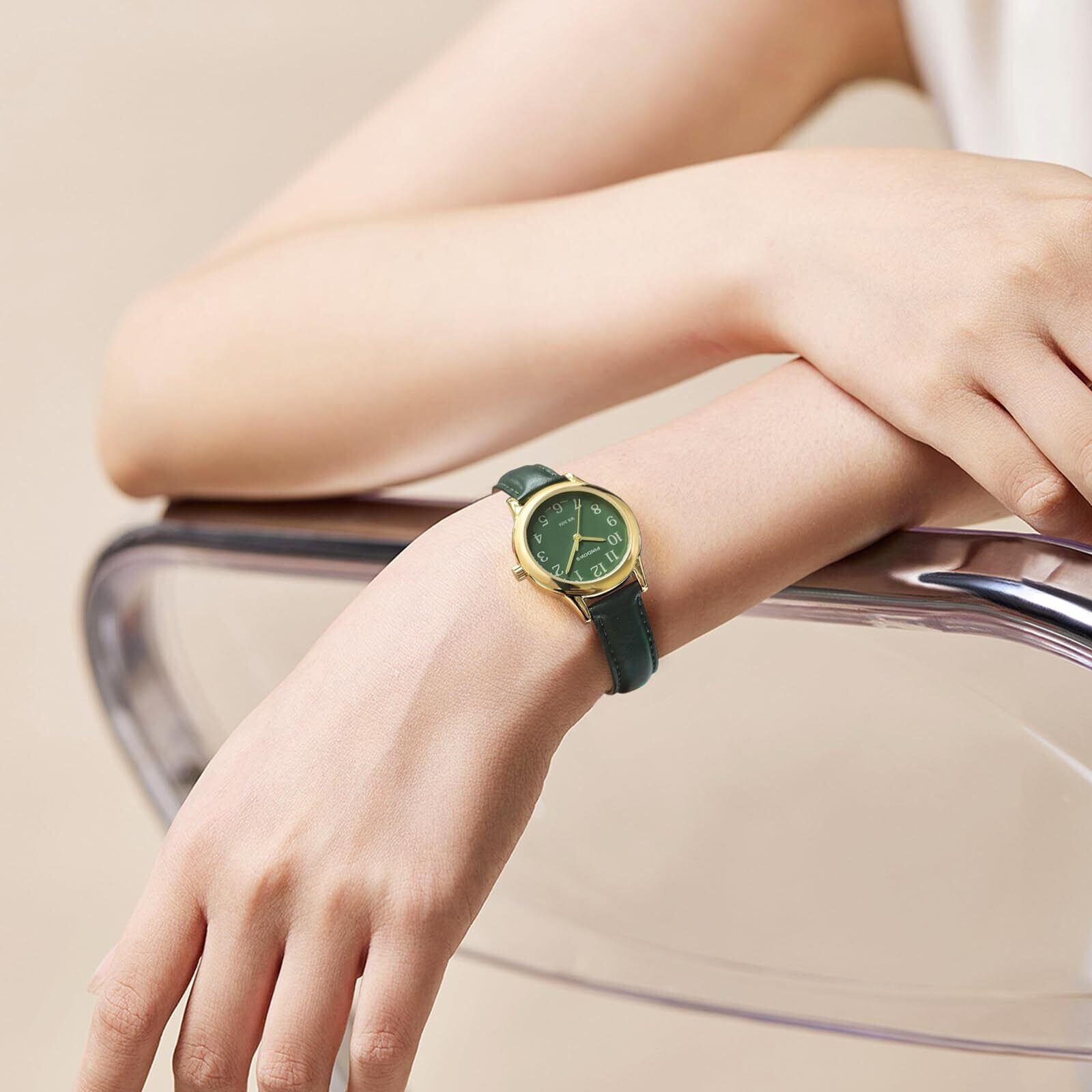この【PINDOWS女性用ミニマリスト腕時計】は、シンプルながらもエレガントな印象を与えるデザインが特徴です。ゴールドトーンのケースとブラックレザーストラップが絶妙に組み合わさり、どんなスタイルにもマッチします。日常使いはもちろん、特別なシーンでも活躍すること間違いなしです!