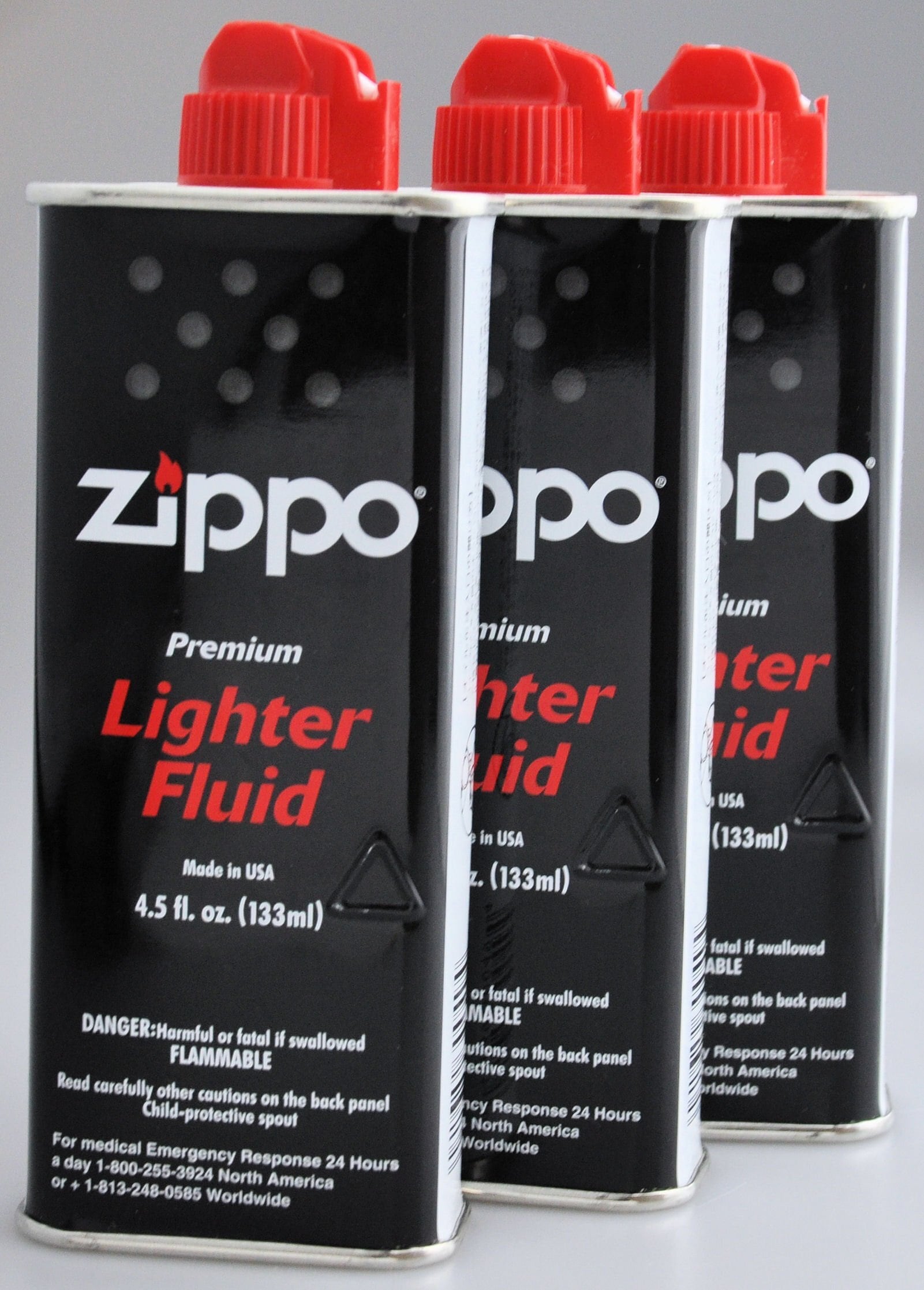 ZIPPO(ジッポー)社製純正のオイル、小缶(133ml)の3本セット。ZIPPOオイルライター以外にも、オイル充填式のハンディウォーマーにも使用できる