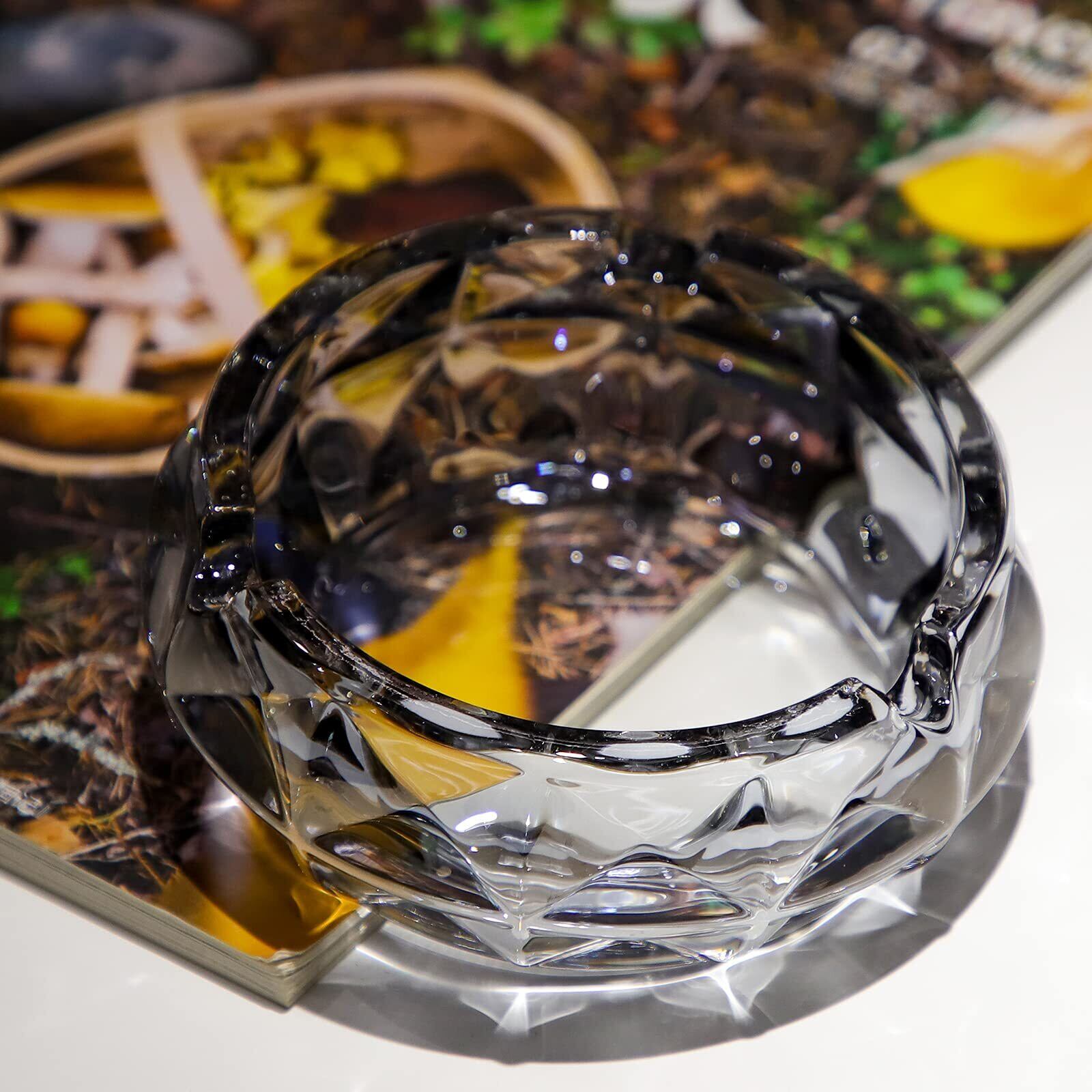 TOSSOW 灰皿 ガラス 静音 大容量 卓上 クリスタル 灰皿 洗いやすい 室内 屋外 兼用 おしゃれ灰皿 煙草 インテリアグッズ 防水 防錆 重厚感 めっきプロセス グレー (大きいサイズ)