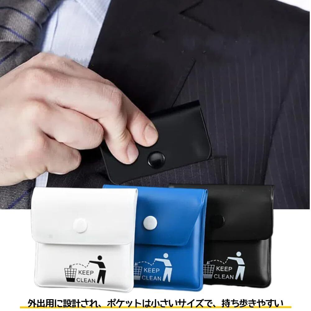【内容】携帯用灰皿袋3枚入、サイズ:8CM×8CM、黒、青、白。