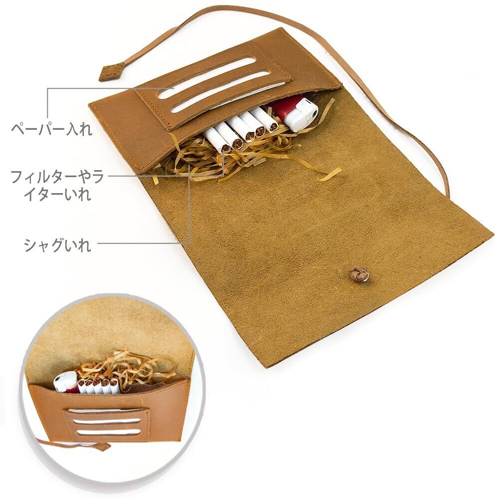 本商品は手巻きタバコをしっかりと収納できるポケットを備えており、煙草葉の管理が簡単です。持ち運びが便利であり、旅行や外出時でもタバコを安心して保管できます。また、頑丈な作りは、日常使いにおいても安心感を提供します。