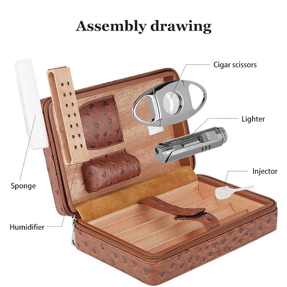 【新着商品】【高い品質】 PIPITA 葉巻ケース 付き直噴ターボライター &シガーカッター,レザースペイン杉 4本 シガレットケース 携帯便利セット ヒュミドール 旅行 シガーケース (葉巻なし)