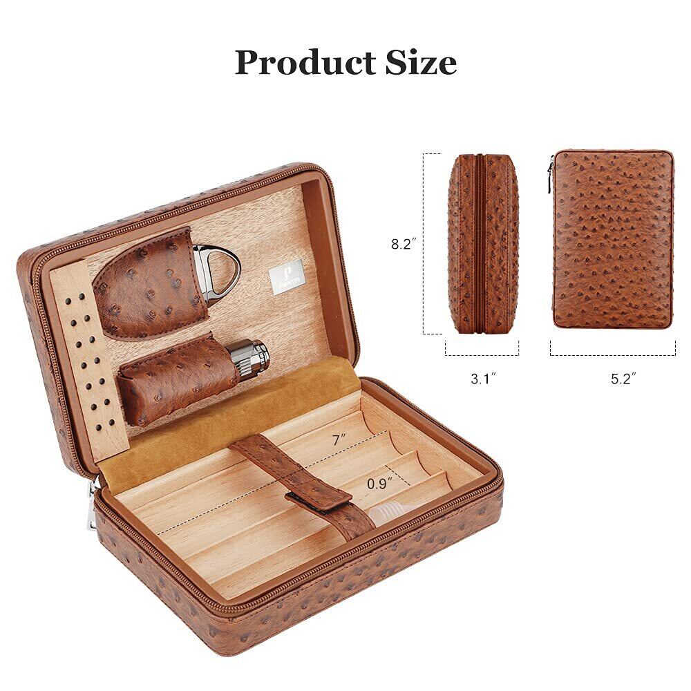 【ポータブルサイズ】:8.2 "×5.2"×3.1"、最大長6.89"、リングゲージ60(0.98 ")の葉巻4本を収納可能。家庭での使用や、休暇、キャンプ、ロードトリップなどの旅行に適しています。家から離れて。