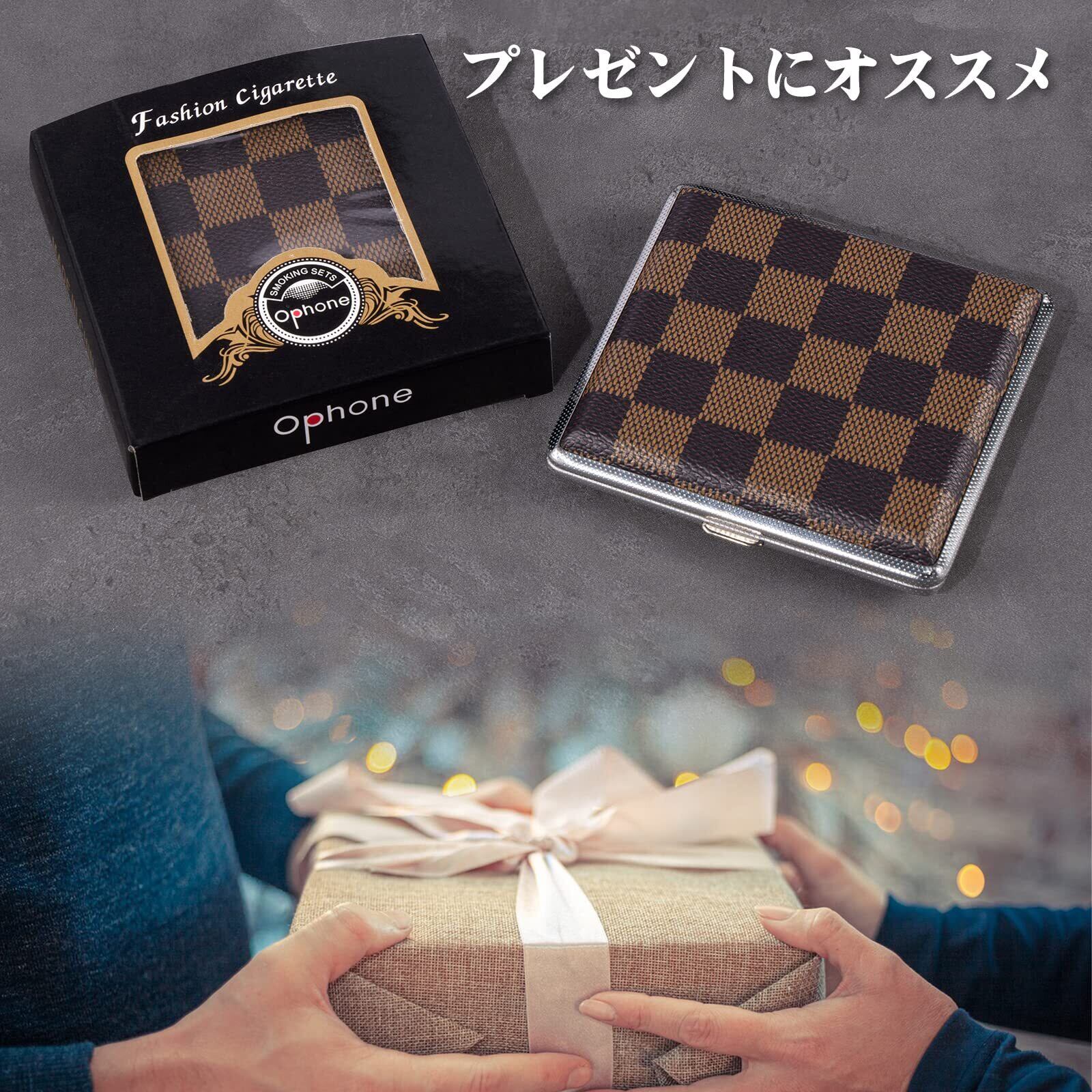 【2022最新】タバコケース シガレットケース シガレットホルダー たばこケース 手巻きタバコ cigarette case 革調 20本 チェック柄(タバコなし)