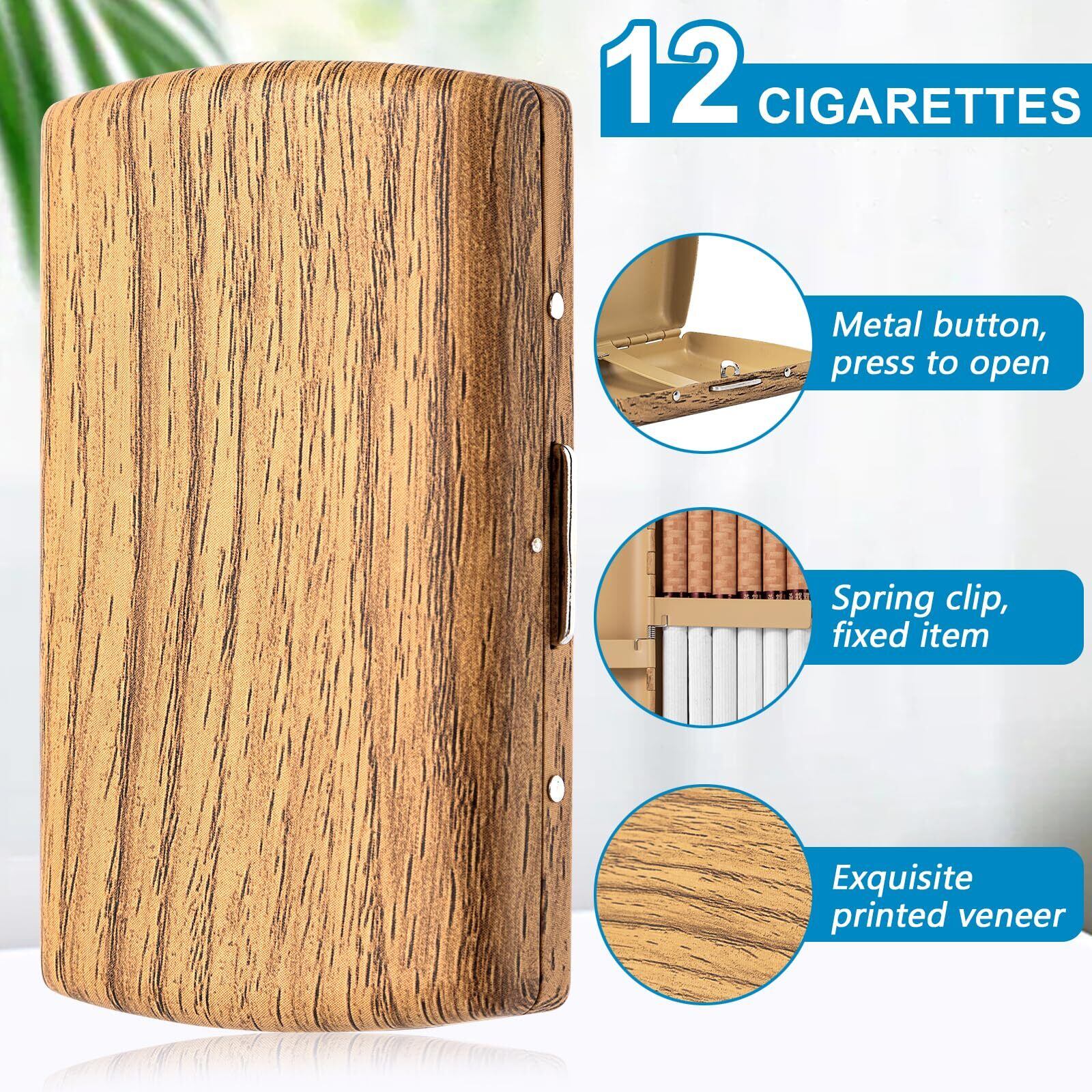 スタイリッシュでコンパクトな木目ミニメタルシガレットケースは、キングサイズのタバコを最大12本入れるのに最適です。