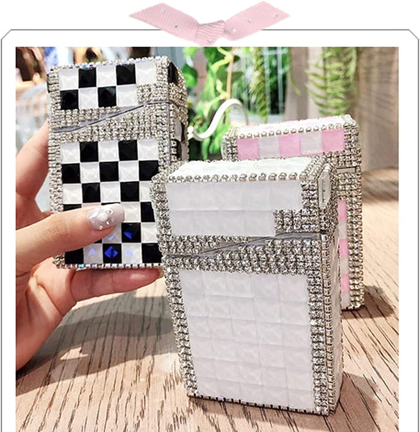 [MRZJ] シガレットケース レディース 、手作り20本の通常のタバコを保持し、クリスタルシガレットボックス 両面ラインストーン、金属製タバコケース レディース,ブルー