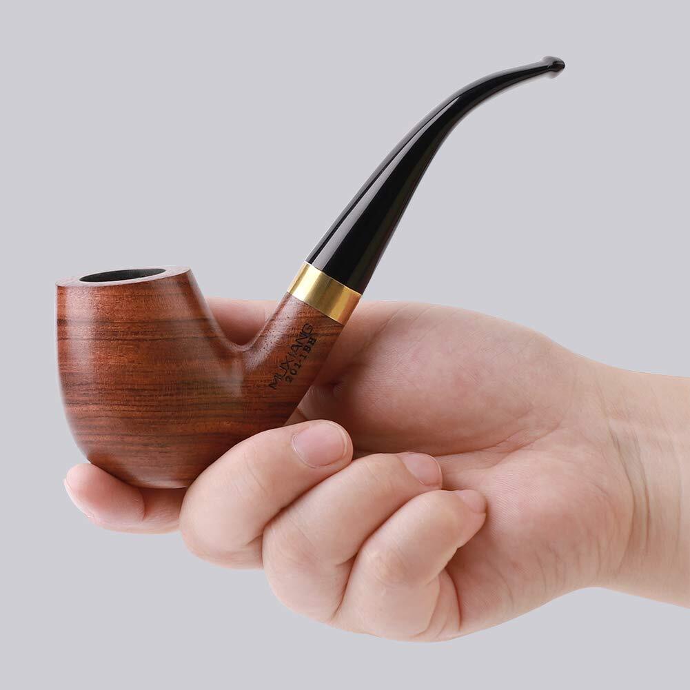 クラシックなデザイン:曲がったシャンクは、持ちやすく、心地よいタバコの煙を人間の生体力学に適合させます。 ケーキ層でコーティングされたエッグスタイルのチャンバーボウルは、初心者が喫煙するのに便利です。
