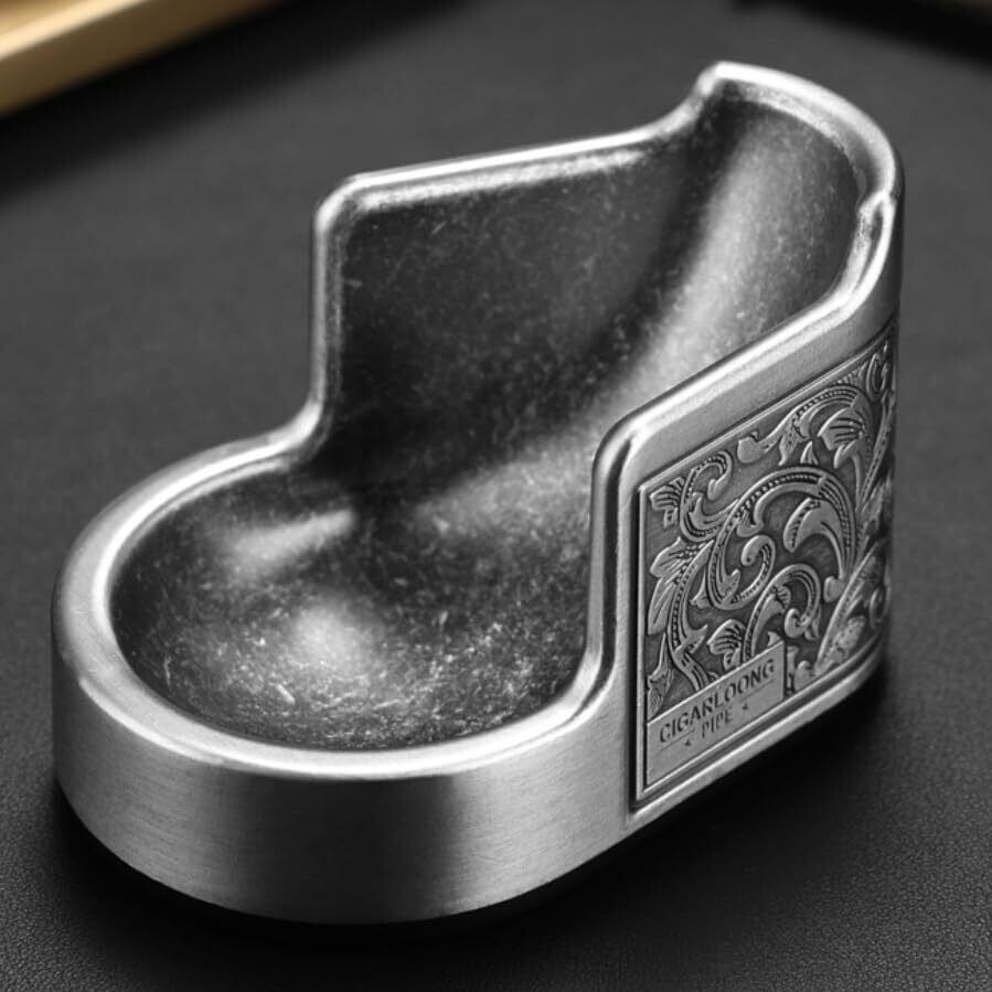 この【パイプスタンド】は、シルバーの美しい仕上げが特徴のアイテムで、卓上に置くだけでおしゃれなインテリアとしても映えます。一本のパイプを優雅にディスプレイできるため、あなたのお気に入りのパイプを見せるための最適な選択です!