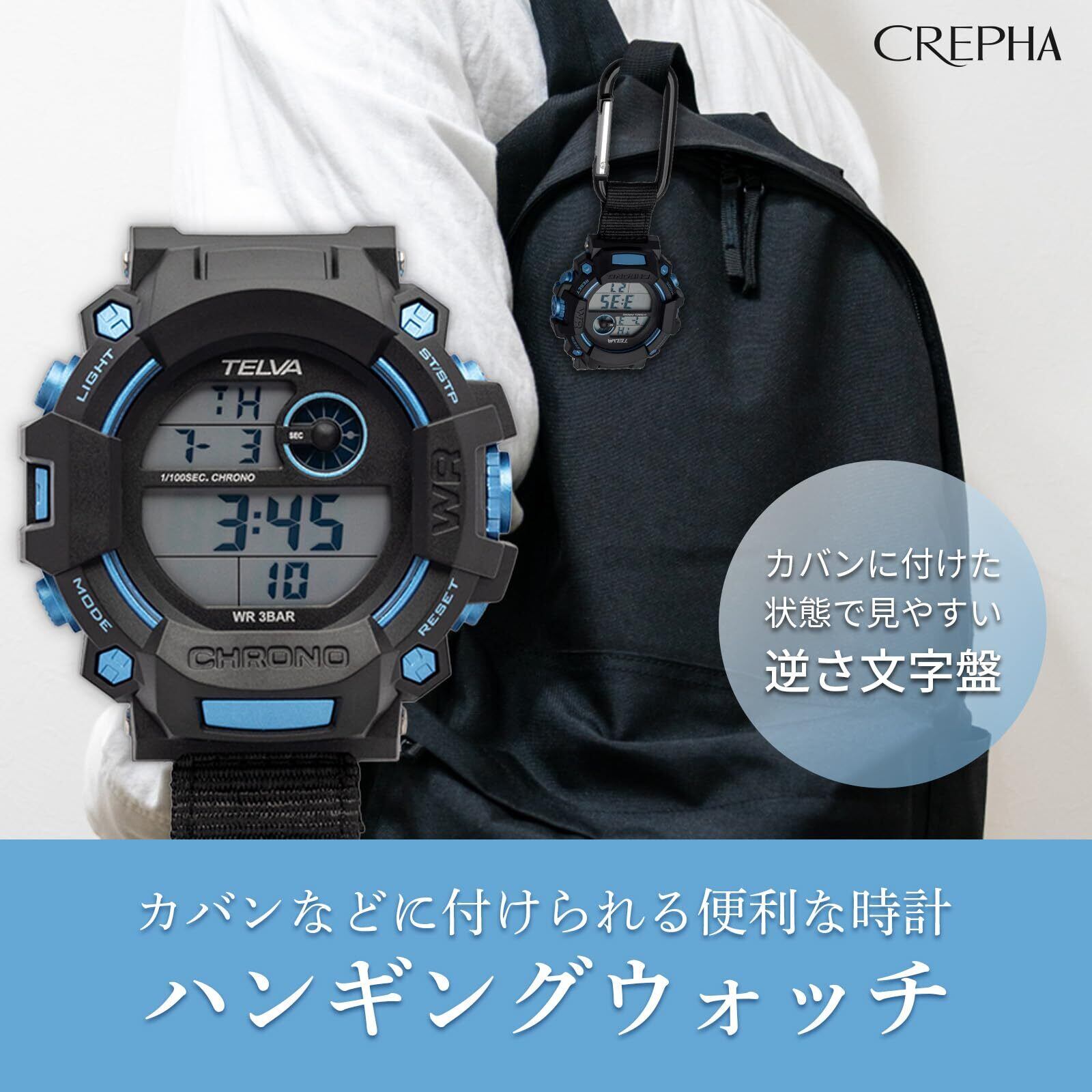 [クレファー] 懐中時計 キーホルダー時計 カラビナウォッチ デジタル 防水 アウトドア 登山 釣り 見やすい かばん リュック用 ブルー AZ-CB-D140-LBL メンズ