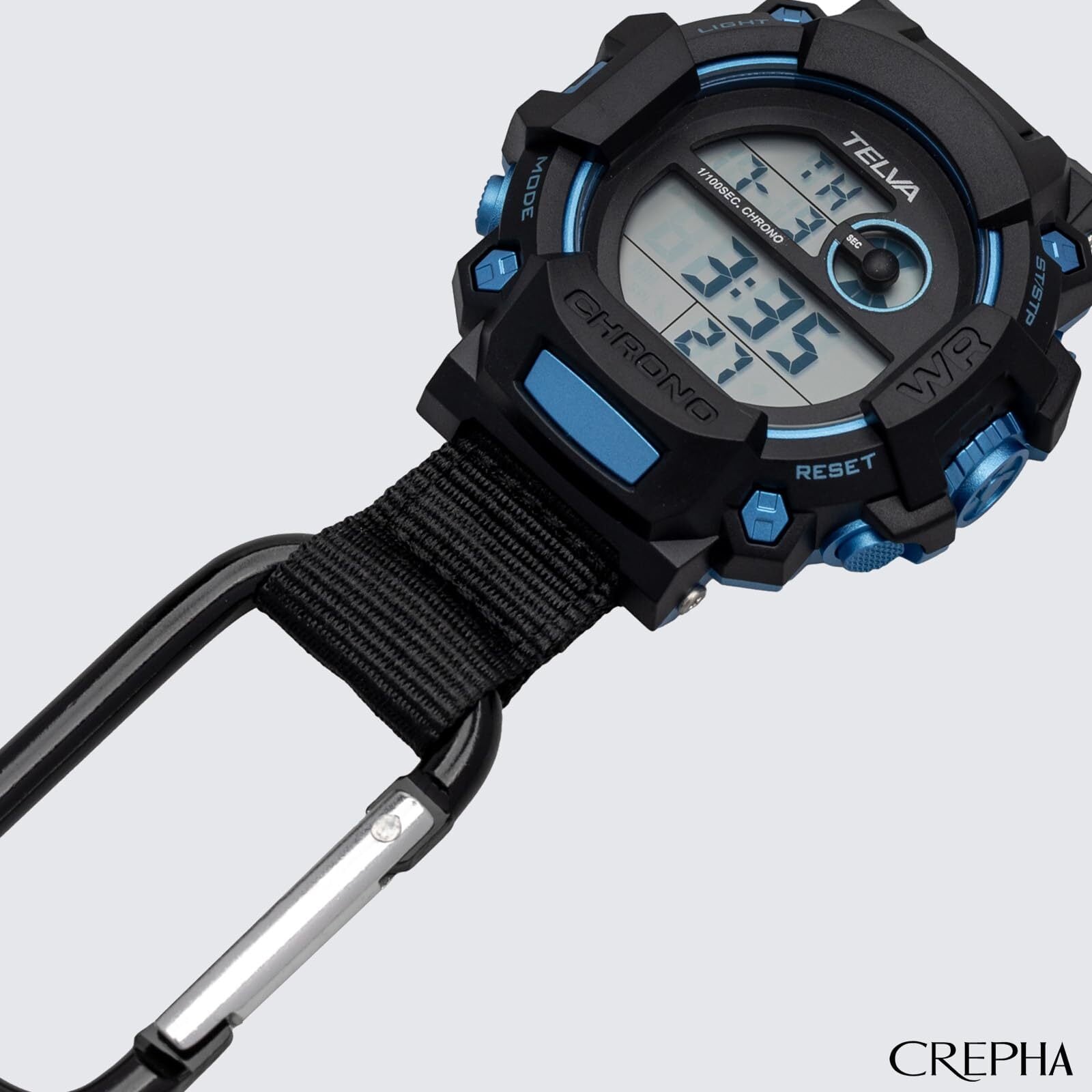 【新着商品】[クレファー] 懐中時計 キーホルダー時計 カラビナウォッチ デジタル 防水 アウトドア 登山 釣り 見やすい かばん リュック用 ブルー AZ-CB-D140-LBL メンズ