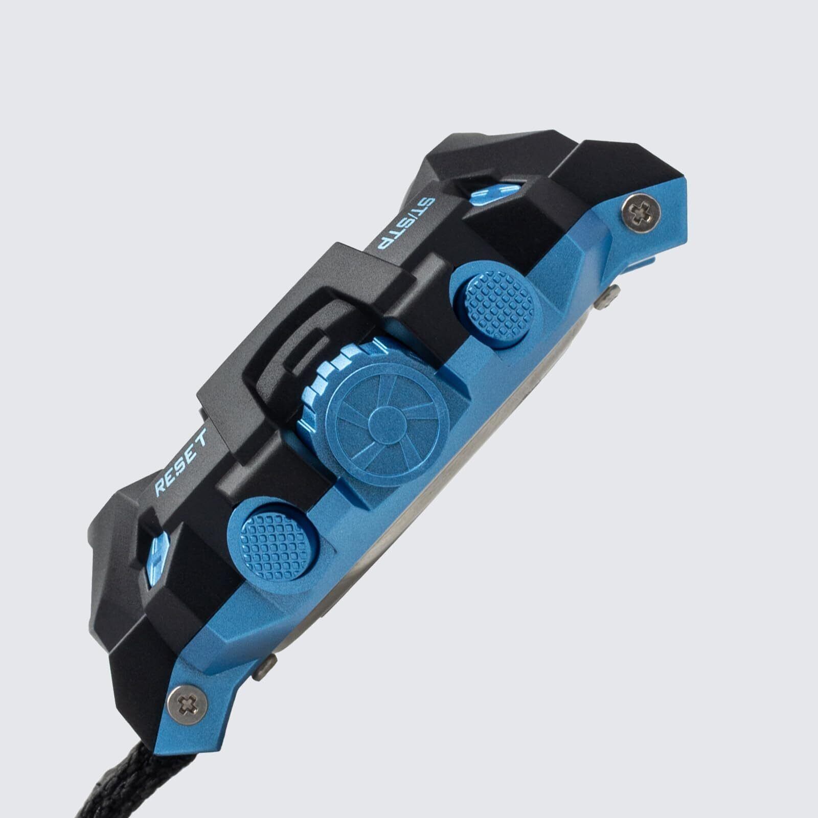 3気圧防水仕様で屋外活動にも対応。デジタル表示で多機能を備えながら、文字板全面を照らすライト機能で夜間や暗所でも時刻確認が可能。